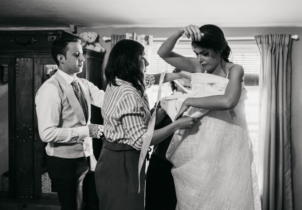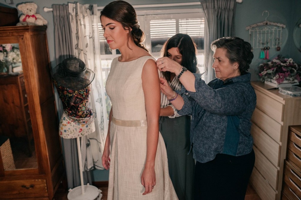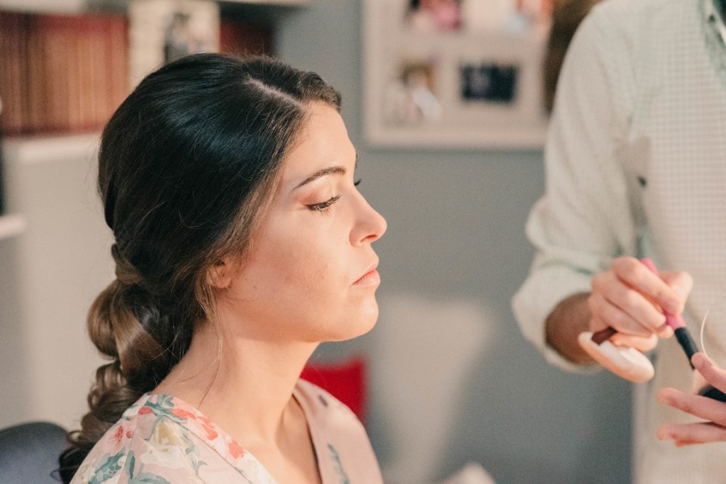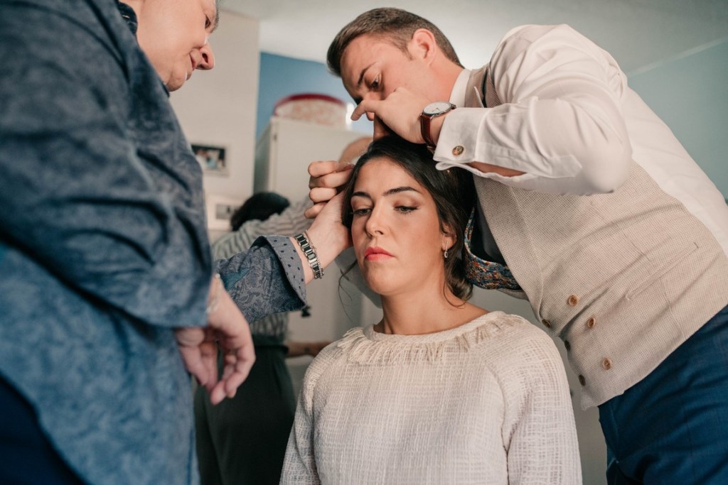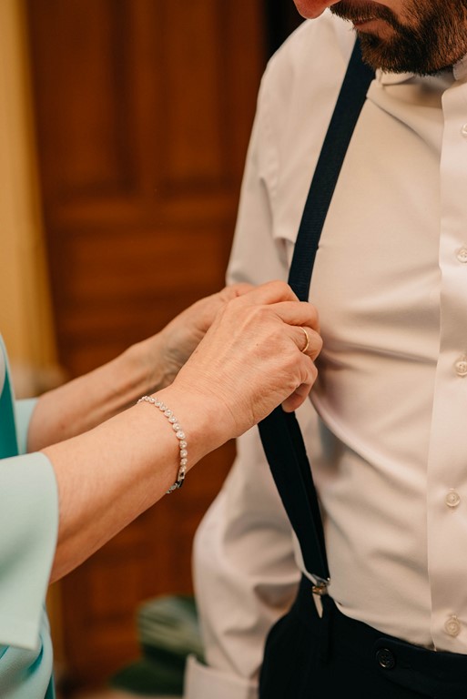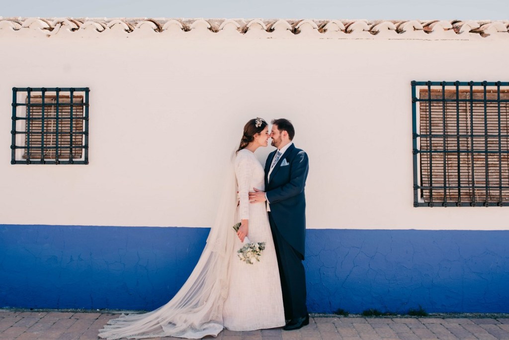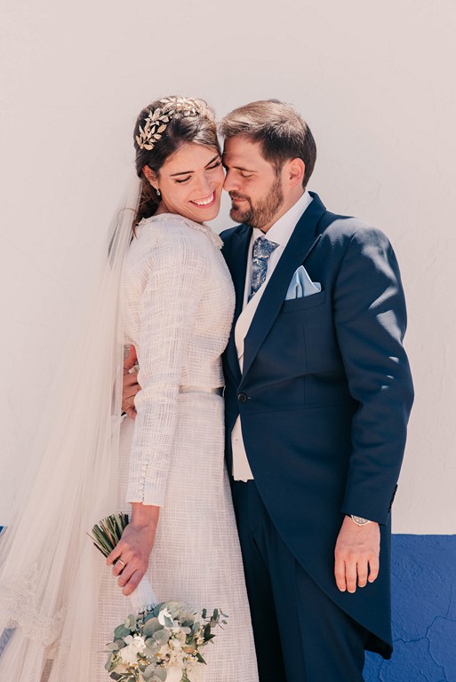 El día de la boda, la casa de Carlos era un ir y venir de invitados, que se iban agolpando en su enorme patio, mientras nosotros realizábamos el reportaje de fotos. Carlos eligió un chaqué azul, con una bonita corbata a juego.