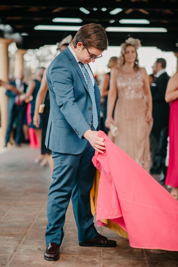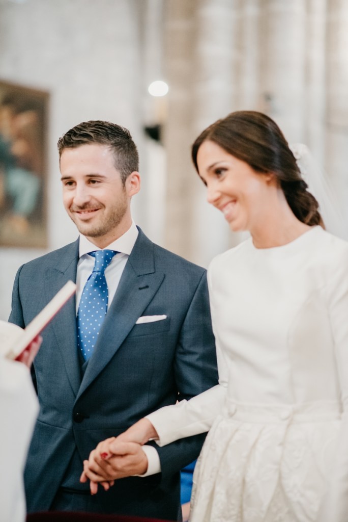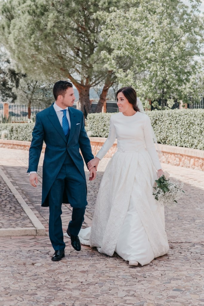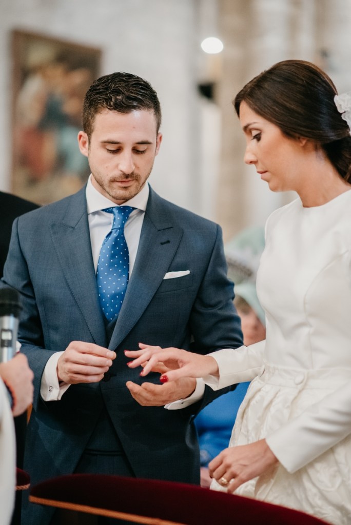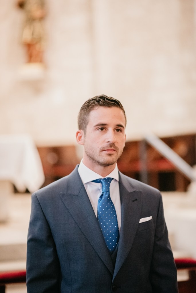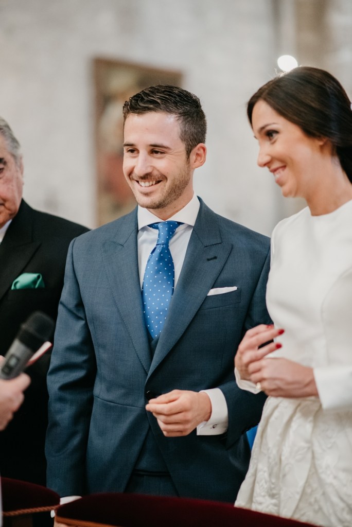 El novio, con sus raíces cántabras, fue acompañado por una multitud de amigos y familiares llegados desde el norte de España para asistir a un día tan especial. El vestía chaqué del diseñador manchego Antonio Ñacle y una preciosa corbata color azulón con lunares. En esta ocasión, por decisión del novio, no realizamos reportaje durante sus preparativos, ya que prefirió vivir esos momentos en la intimidad, con sus familiares llegados de Cantabria.