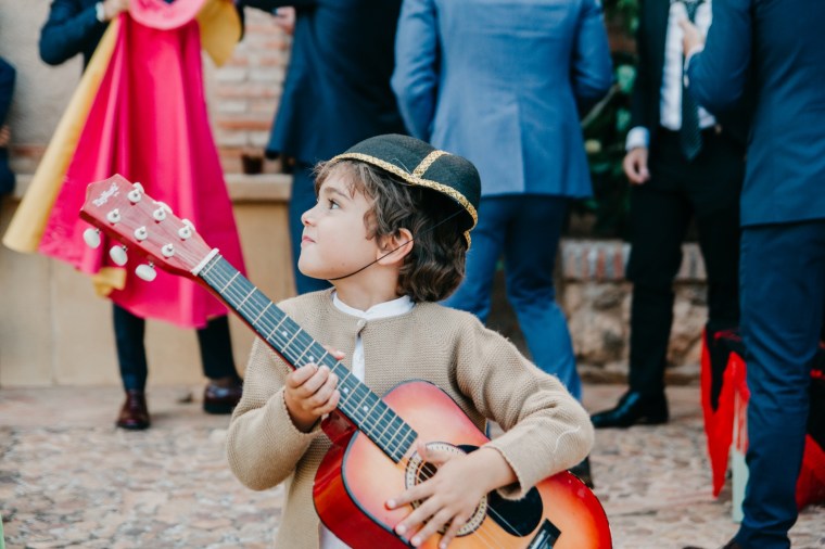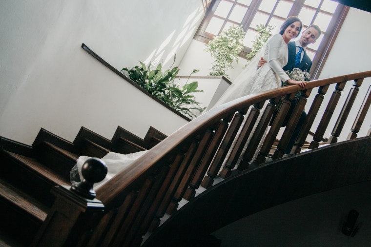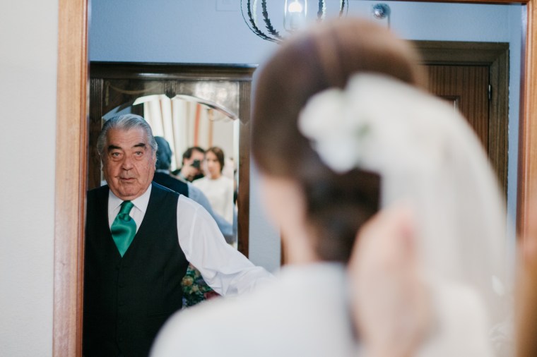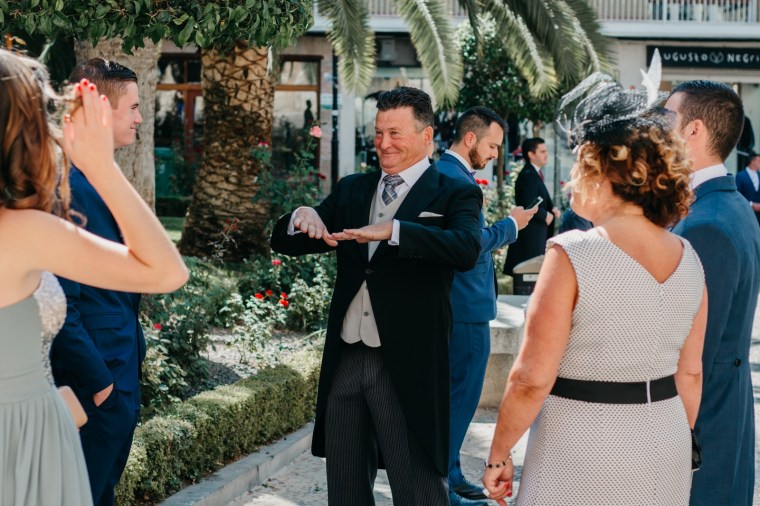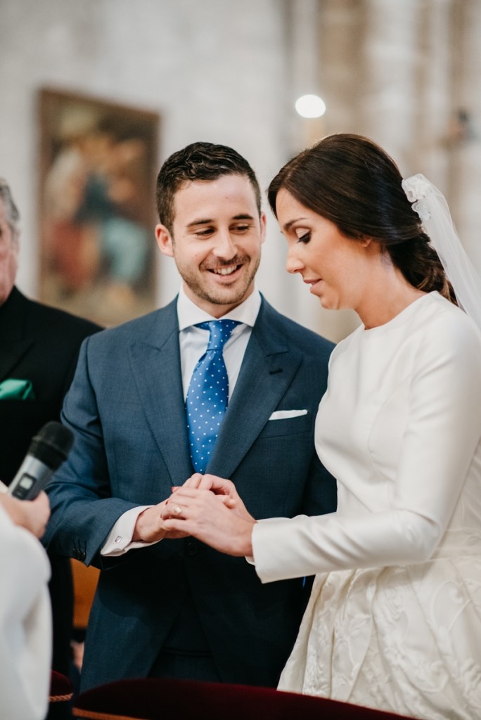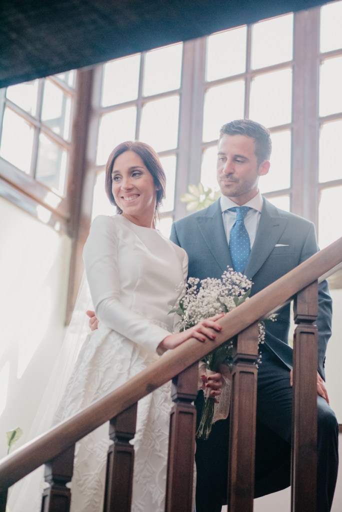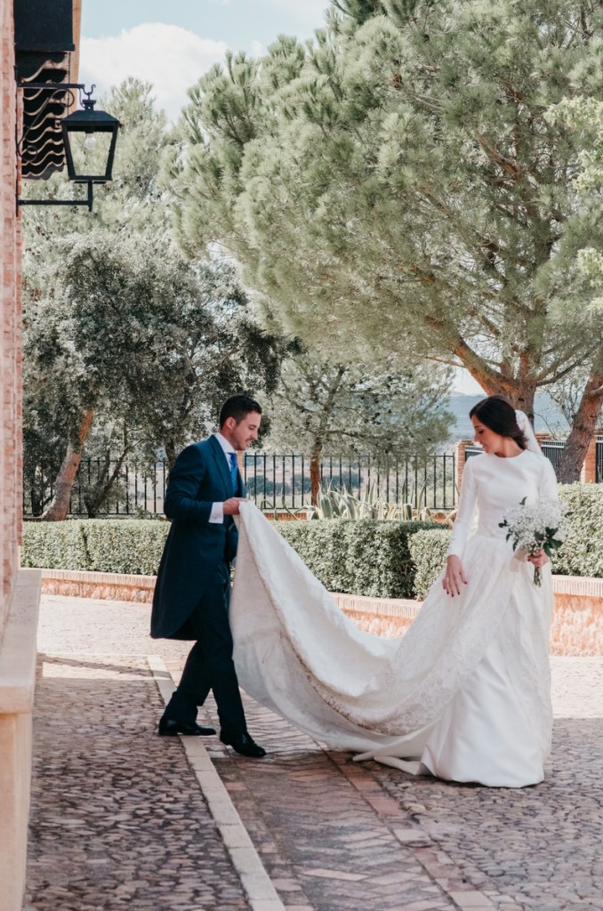 El novio, con sus raíces cántabras, fue acompañado por una multitud de amigos y familiares llegados desde el norte de España para asistir a un día tan especial. El vestía chaqué del diseñador manchego Antonio Ñacle y una preciosa corbata color azulón con lunares. En esta ocasión, por decisión del novio, no realizamos reportaje durante sus preparativos, ya que prefirió vivir esos momentos en la intimidad, con sus familiares llegados de Cantabria.