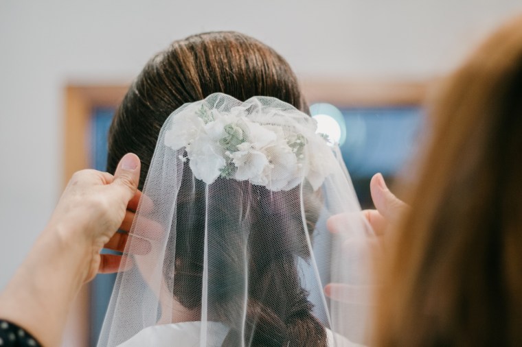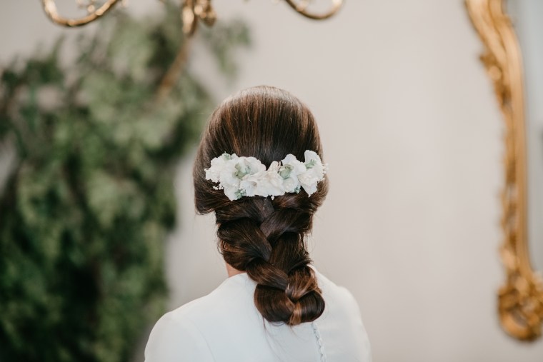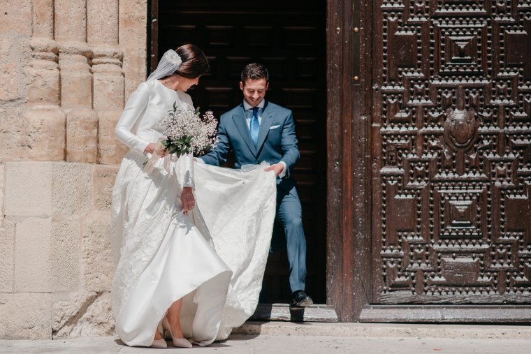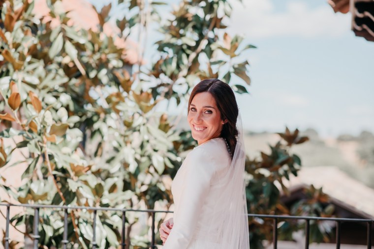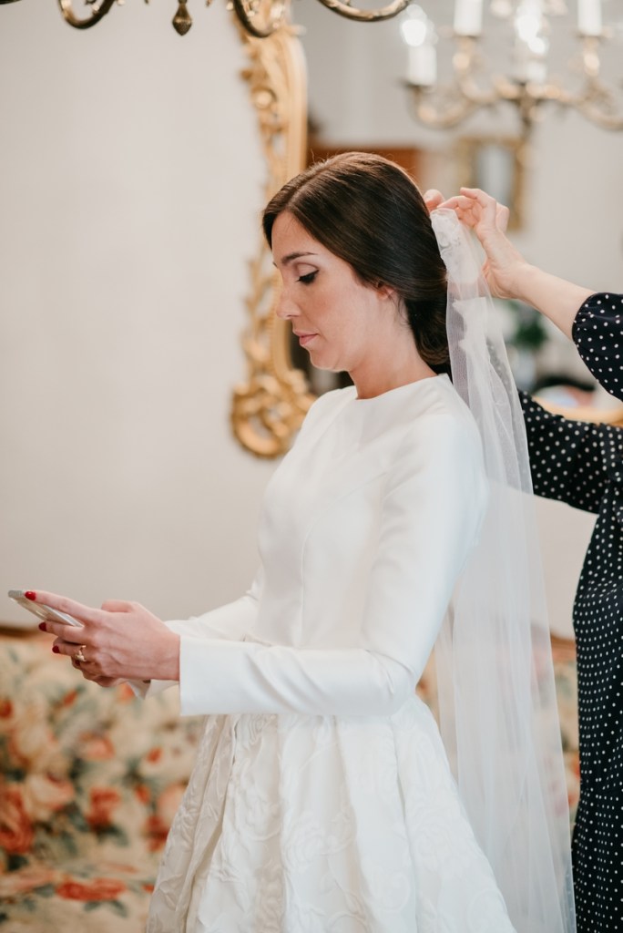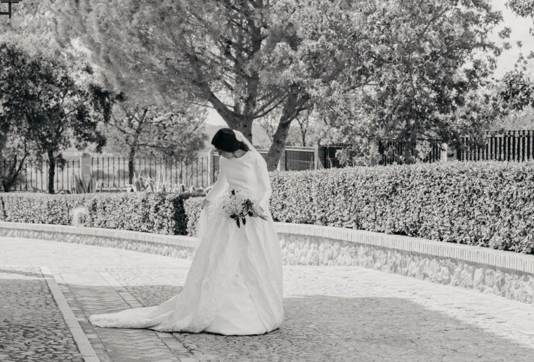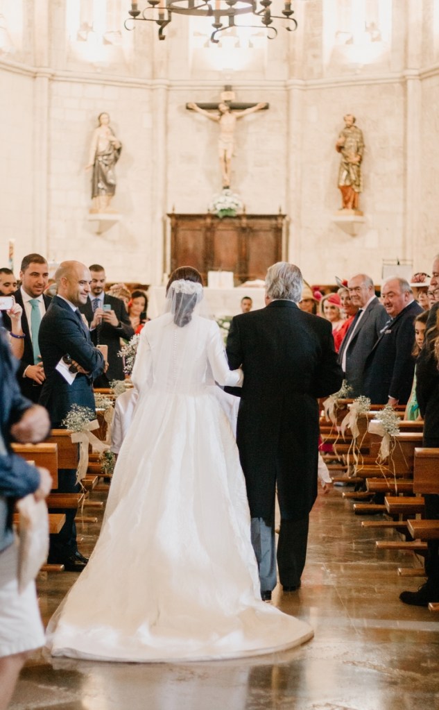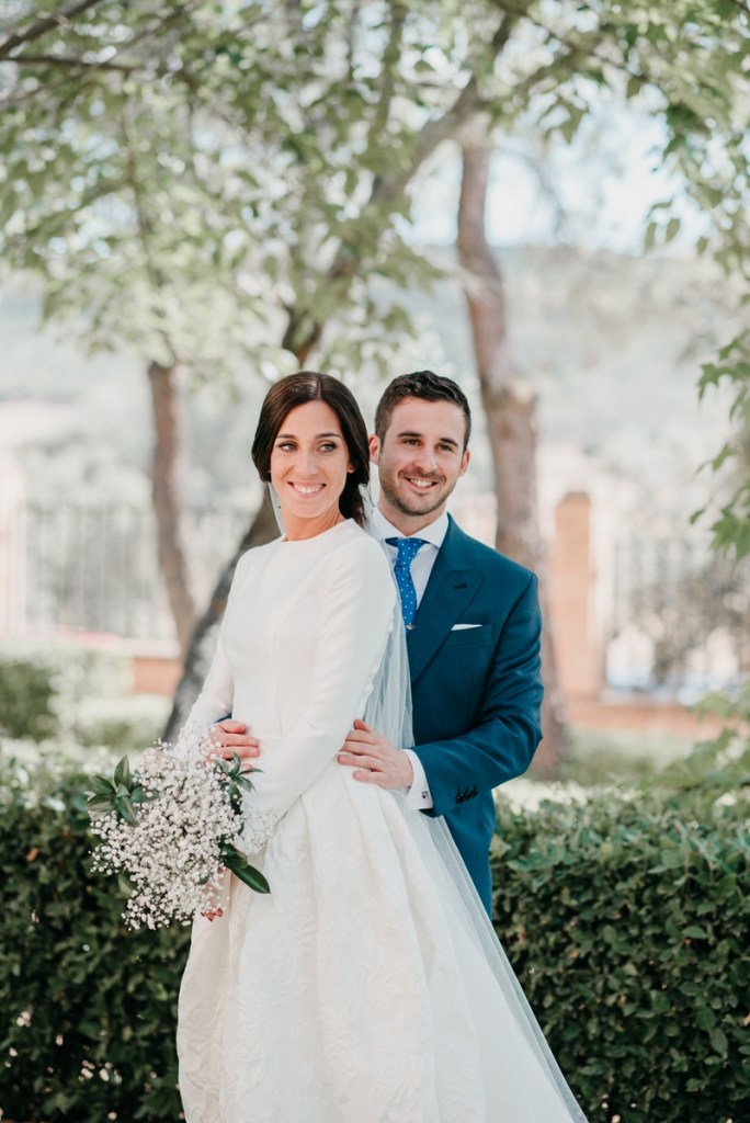 Precioso vestido de novia de Vicky Martín Berrocal y tocado de Volvorete
