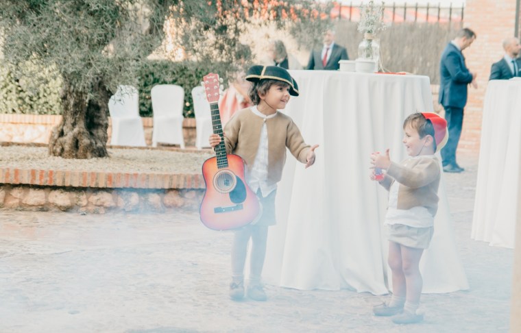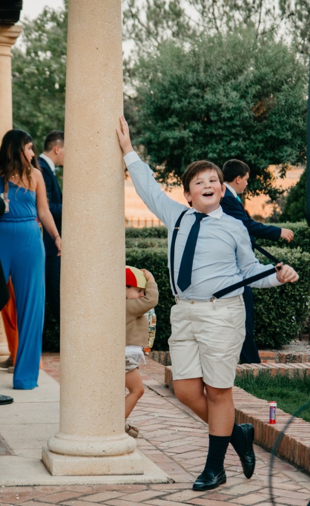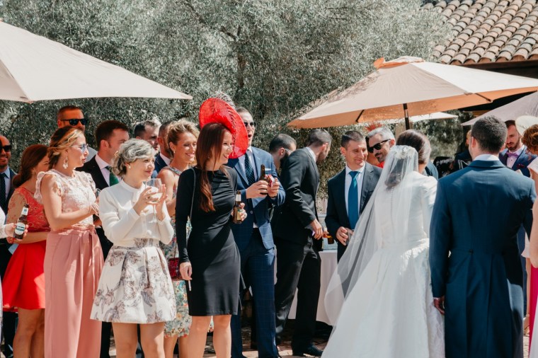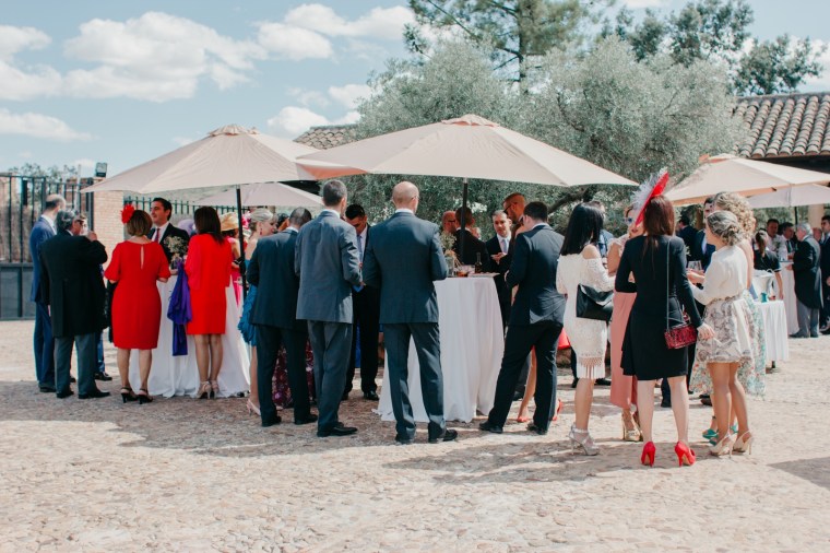 Tras la ceremonia, nos desplazamos a la preciosa Finca la Peralosilla, una maravilla de entorno, en el que el catering Benidorm se encargó de que todo estuviera al gusto de los invitados, los cuáles disfrutaron, entre otras cosas, de una espléndida mesa de quesos durante el cóctel, y una mesa de dulces durante la barra libre. Además, los novios se encargaron de mucha de la decoración de la finca, con un cuidado seating plan, detalles para sus invitados, incluso un original photocall ambientado como si de una caseta de la feria de abril de Sevilla se tratase, dónde pequeños y mayores disfrutaron de lo lindo.