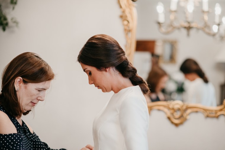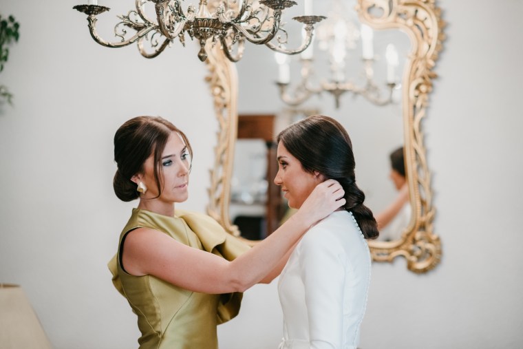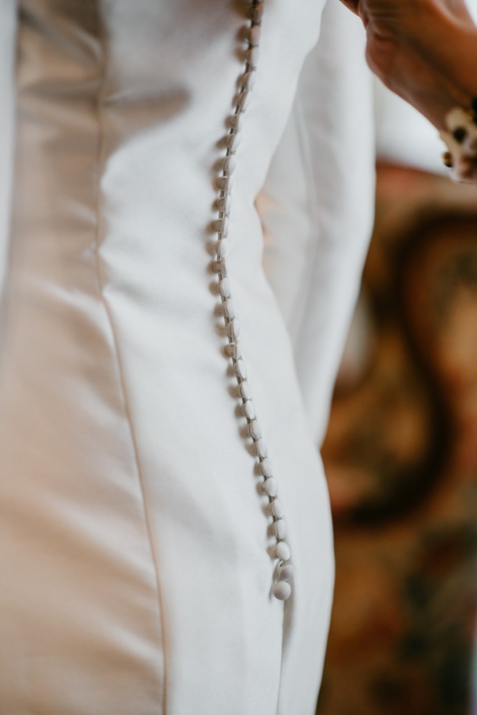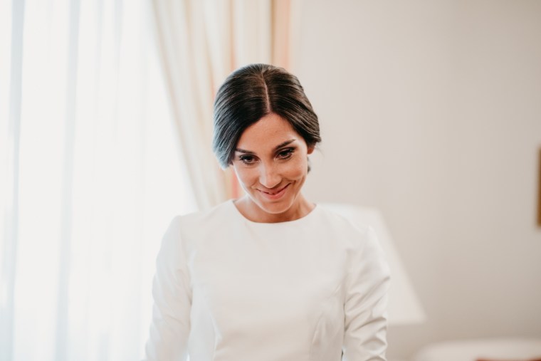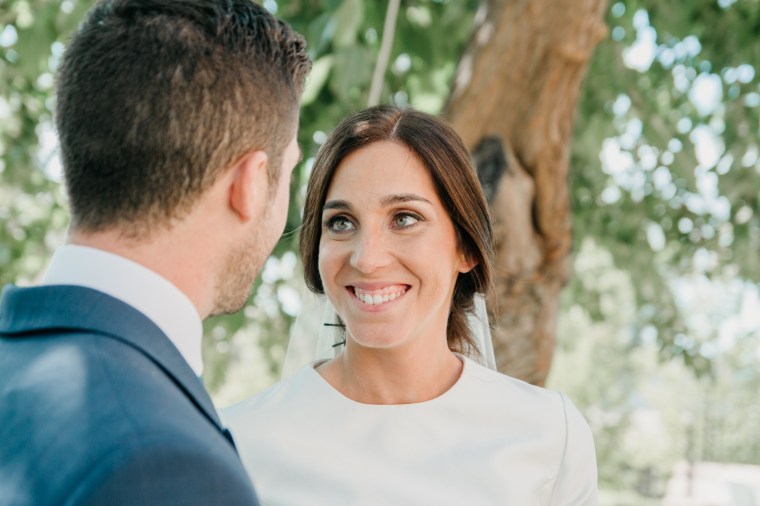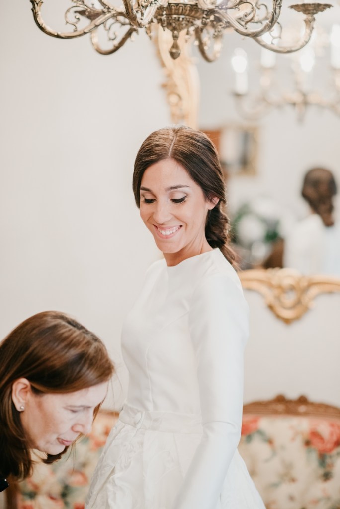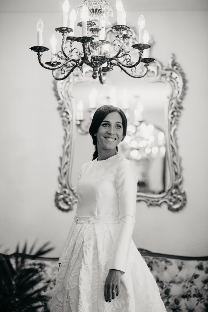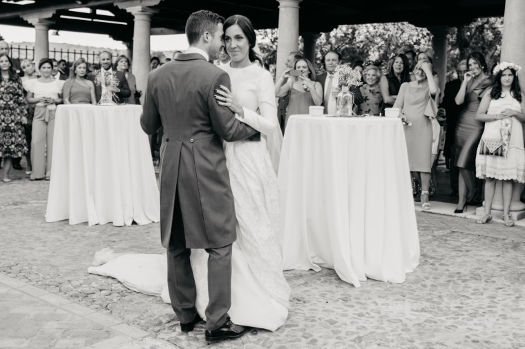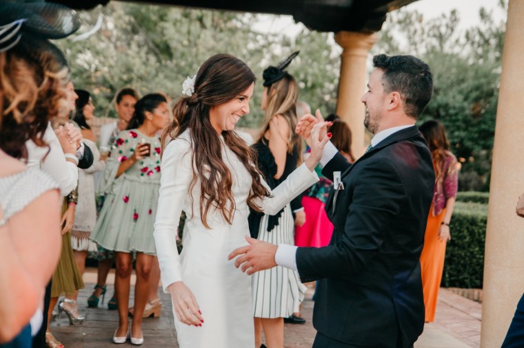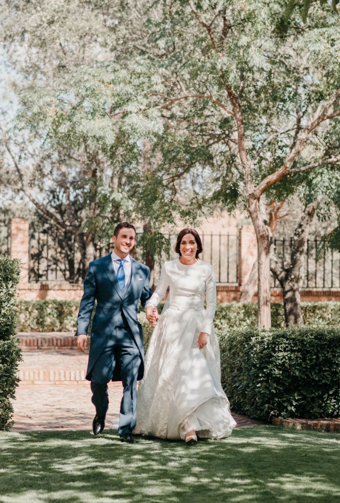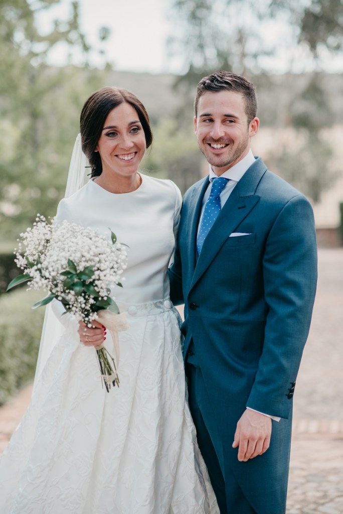 Rocío nos sorprendía con una maravilla de vestido de dos piezas, de la diseñadora Vicky Martín Berrocal de Mundo Novias que hizo que pudiésemos verla con un segundo look diferente ya durante el baile, y al que, hasta ese momento (dónde nuestra guapa novia se soltó la melena y siguió igual o más guapa aún) lo acompañaba un tocado de Volvorete sobre una trenza obra de Ruvicán Peluqueros y un perfecto maquillaje de Javier Colado.