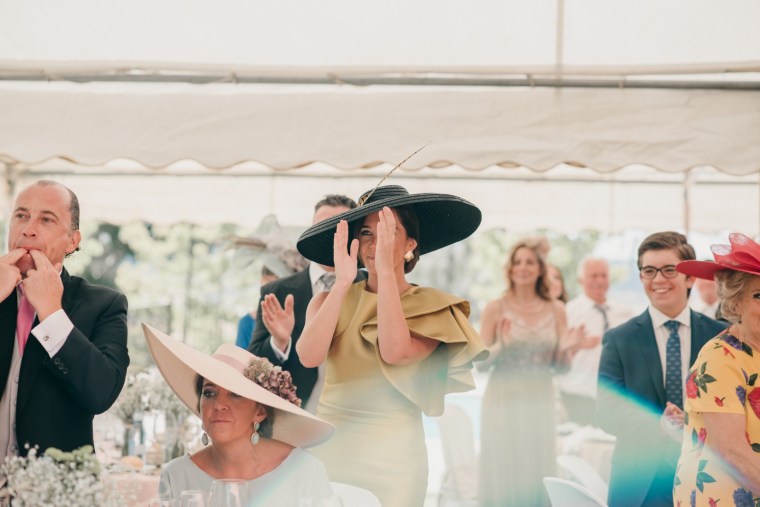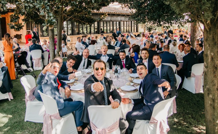 El día tuvo una temperatura ideal, y disfrutamos de muchos momentos emotivos, como la entrega del ramo de la novia a una de sus mejores amigas o los cantos emocionados del himno cántabro por parte de Felipe y sus familiares y allegados, himno que acabó cantando prácticamente todo asistente a la boda y que nos llegó a emocionar tras las cámaras.