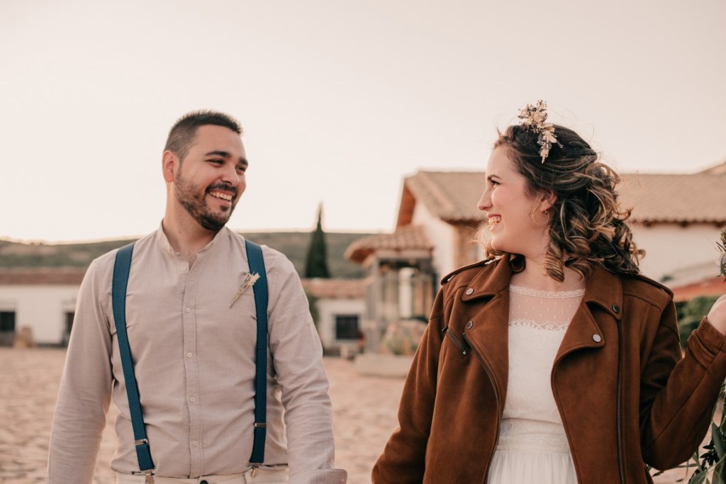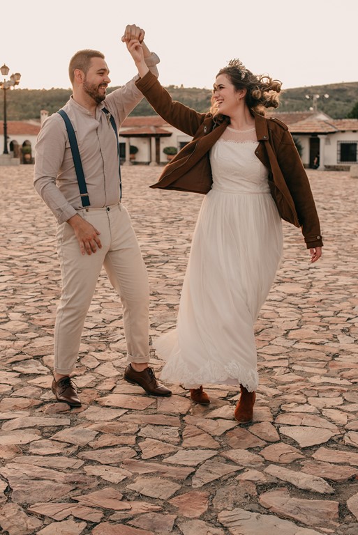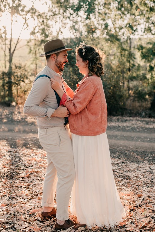 Tras esto, cambiamos el look de Diana, por otro más informal, con su pelo suelto, y cazadora de ante rosa. La tarde caía, y con ella, la luz más bonita, que nos dejó una parte preciosa de la sesión, con unos tonos inigualables. Fran también cambió un poco el look, añadiendo un sombrero, y realizamos unas fotos muy divertidas.
