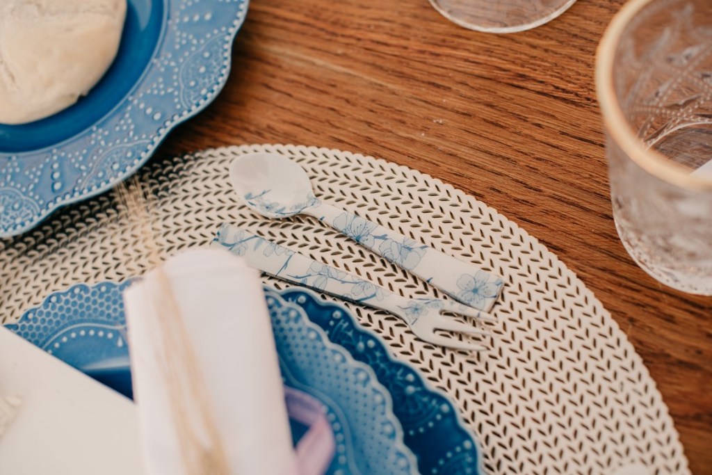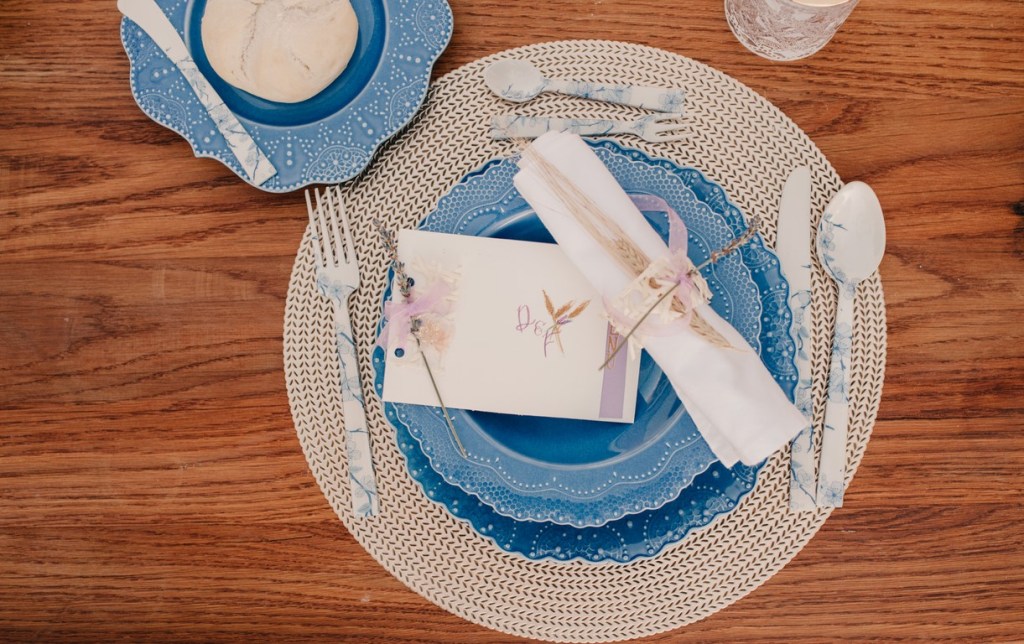 En la mesa, montada entre los olivos de la placita, contamos con el menaje de Salvador Bachiller, original y único a más no poder. Igualmente decorada por Cristina, para una cena íntima. El color dominaba, dando una alegría y una luz espectacular, a juego también con las flores.