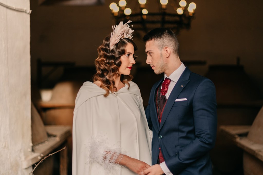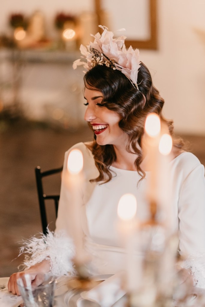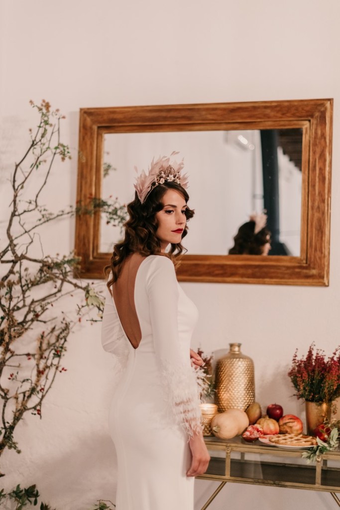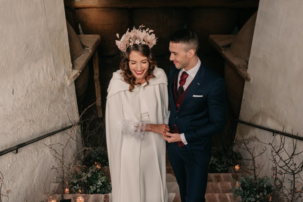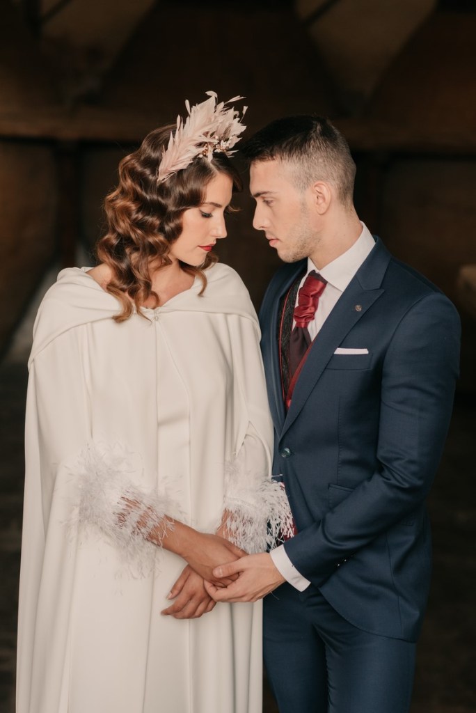 La navidad es una fecha cargada de magia que vuela en el ambiente, ligera como las plumas que llevaba Sonia en su vestido y en su maravilloso tocado. No hace falta decir lo que a nosotros particularmente nos gustan estas fechas, tanto que, como ya sabéis, nuestra boda fue en navidad.