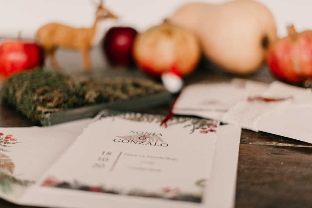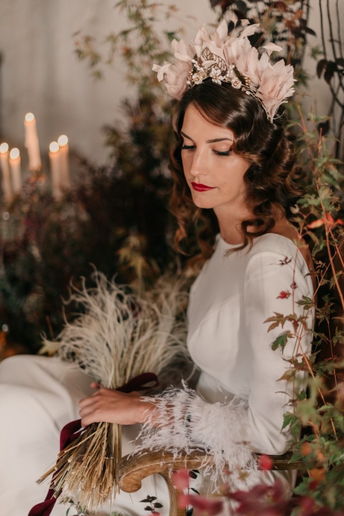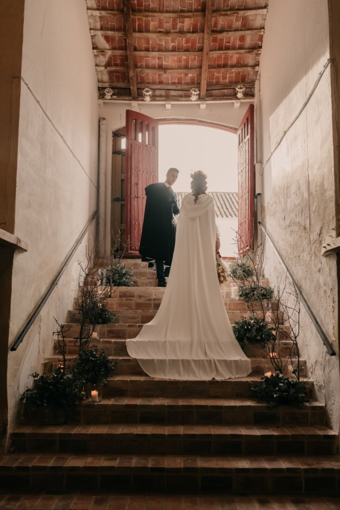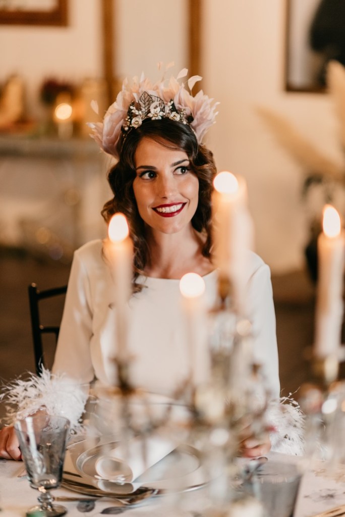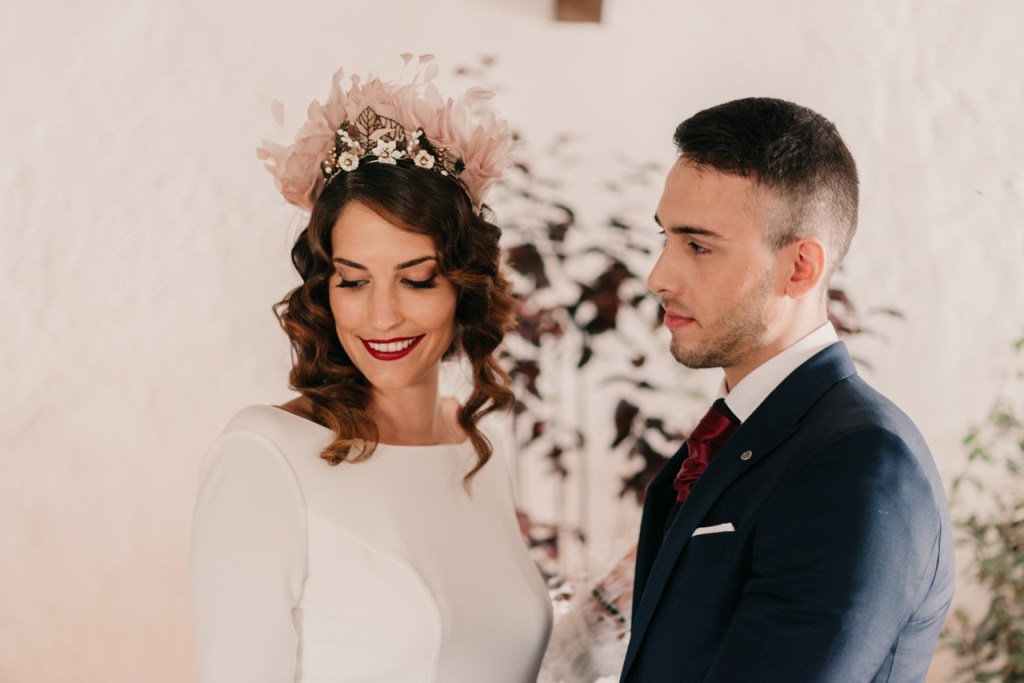 La navidad es una fecha cargada de magia que vuela en el ambiente, ligera como las plumas que llevaba Sonia en su vestido y en su maravilloso tocado. No hace falta decir lo que a nosotros particularmente nos gustan estas fechas, tanto que, como ya sabéis, nuestra boda fue en navidad.