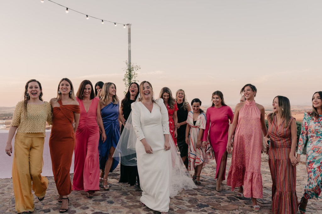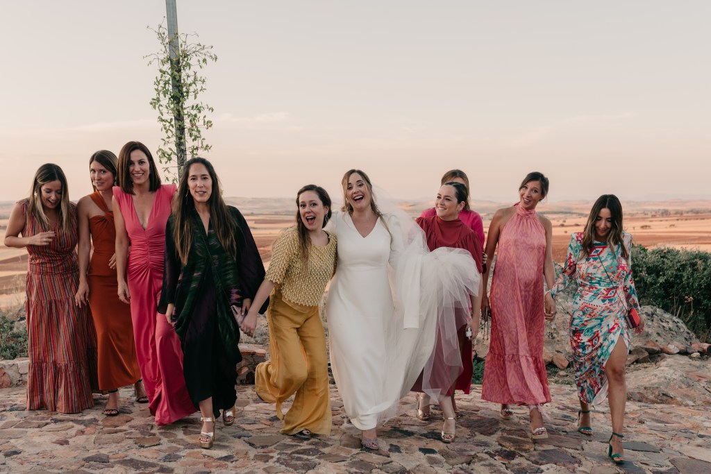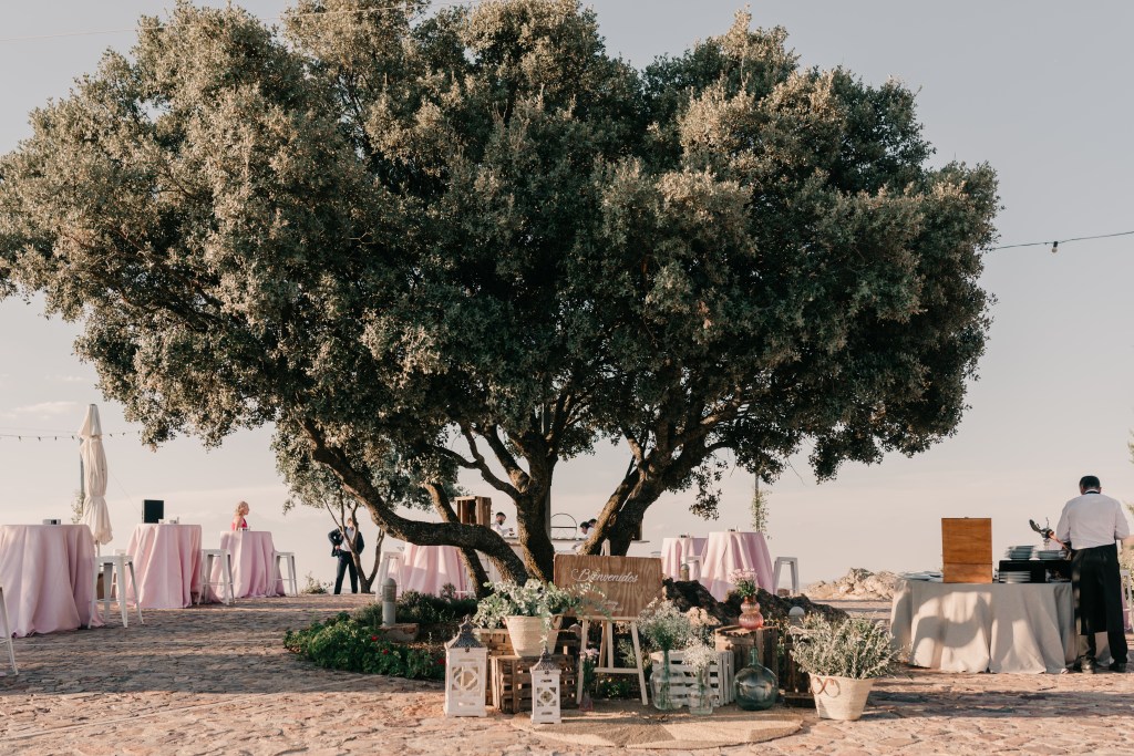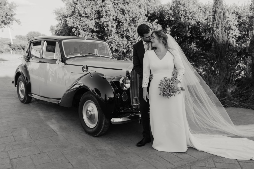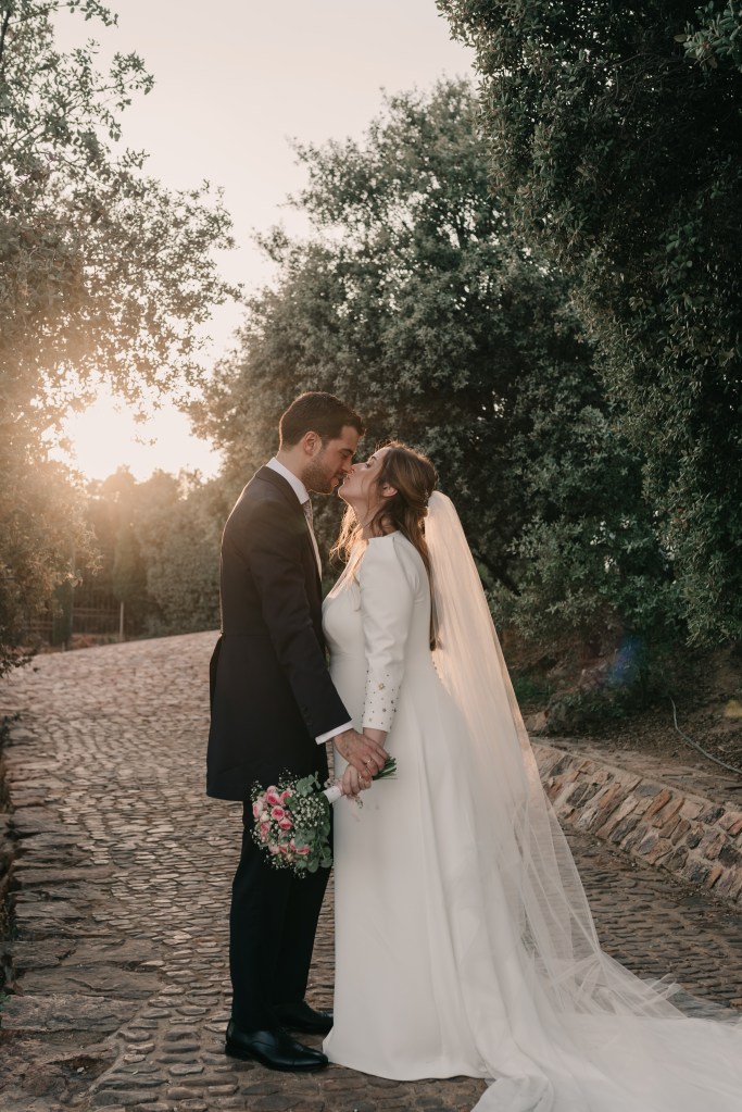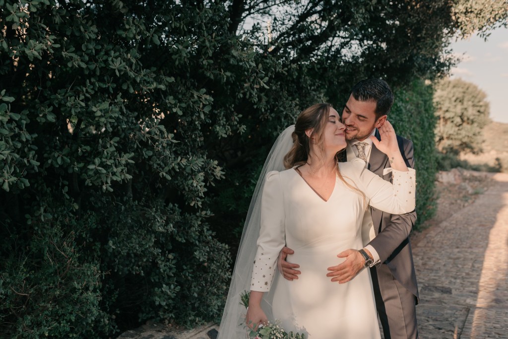 Tras la ceremonia, y la emotiva salida repleta de besos y abrazos, los novios se dirigirían a El Mirador de la Dehesa en el coche clásico que escogieron para su día. La finca estaba preciosa, especialmente, con esa luz de atardecer que tanto nos gusta. Con ella aprovechamos para realizar la sesión de pareja en la propia finca, mientras los invitados llegaban. Después, siempre nos gusta aprovechar los momentos del cóctel para realizar fotografías o vídeos más distendidos con los amigos y familiares.