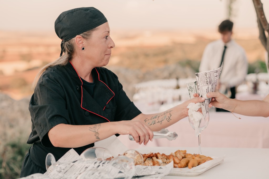 El Catering Las Aguas fue el encargado del menú y la decoración de la misma, destacando los diversos puestos de comida durante el cóctel y la mantelería de las mesas.