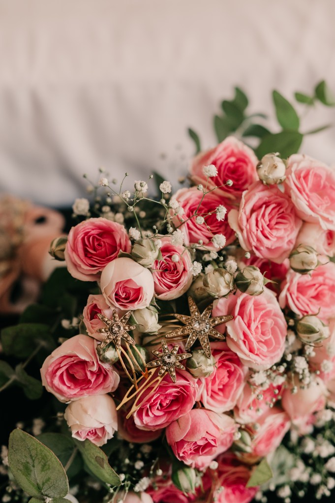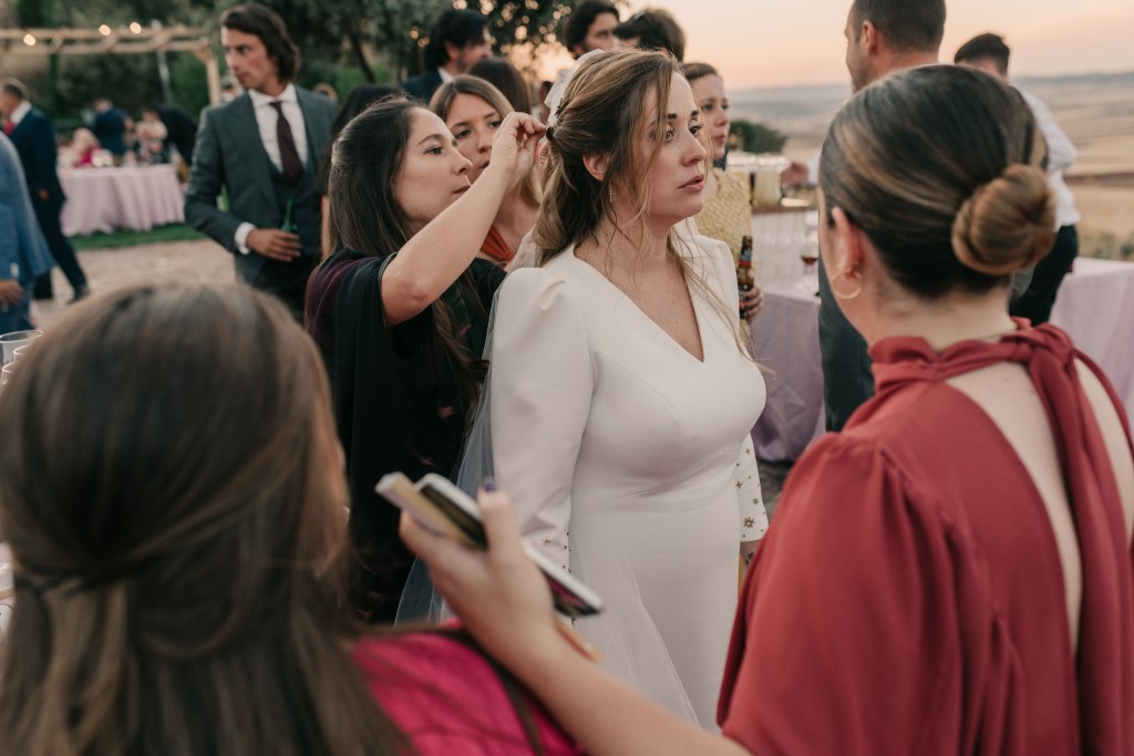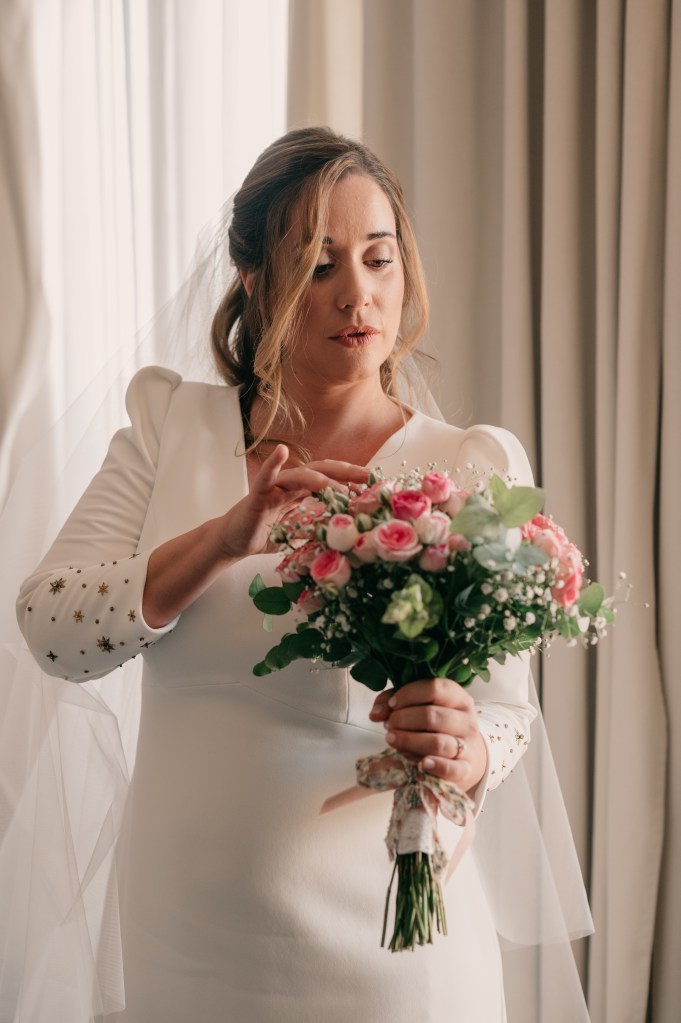 Por su parte, Isa eligió el Hotel Alfonso X para prepararse, acompañada de su madre y amigas más íntimas. Su precioso vestido de Valenzuela Atelier le quedaba como un guante, destacando esas mágicas estrellas que llevaba incrustadas en las mangas, a juego con las horquillas de su peinado, realizadas por las maravillosas manos de Virginia de Volvorete. Su look lo remataban los bonitos zapatos en rosa empolvado de Flor de Asoka. Del estilismo se encargó Mary Kay.