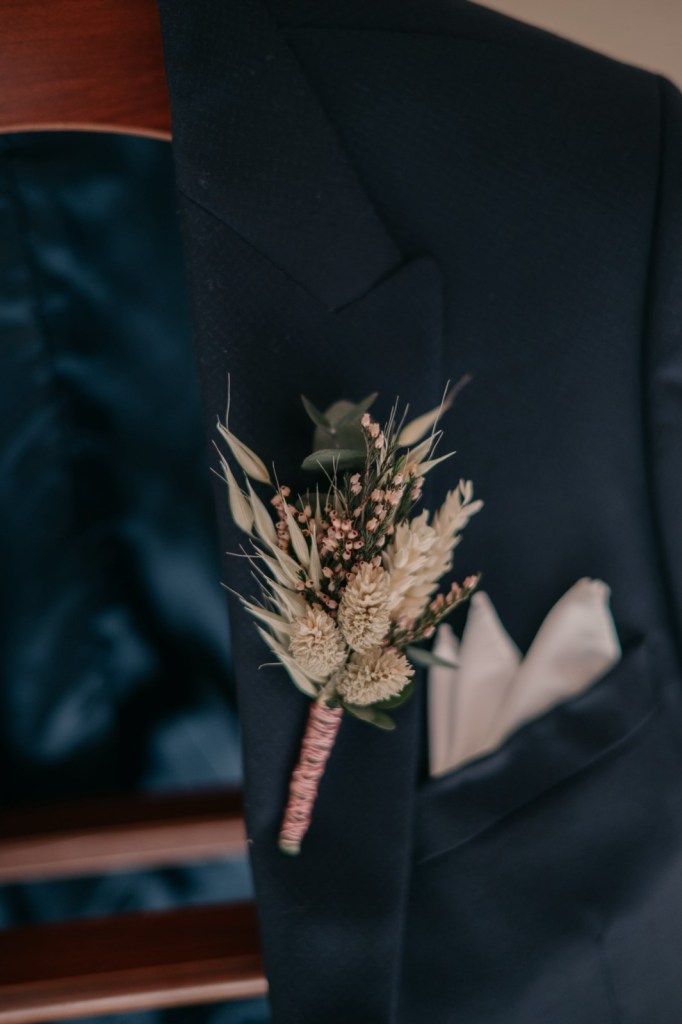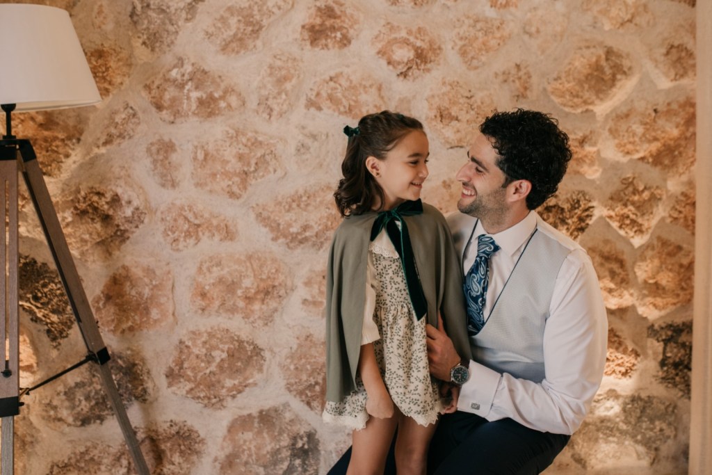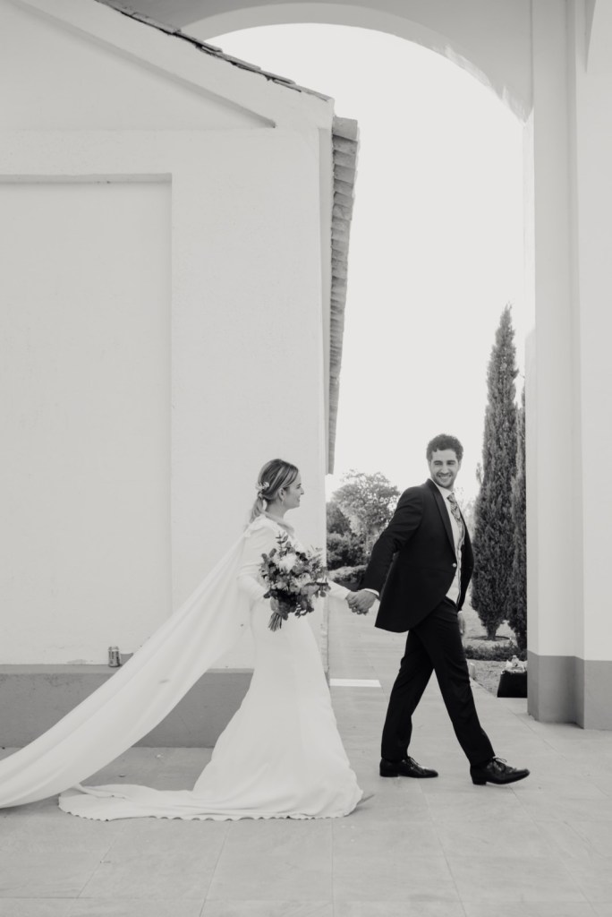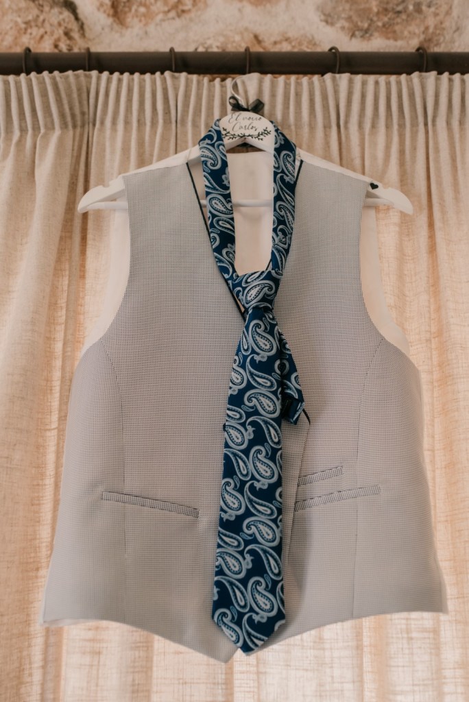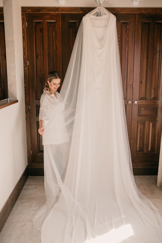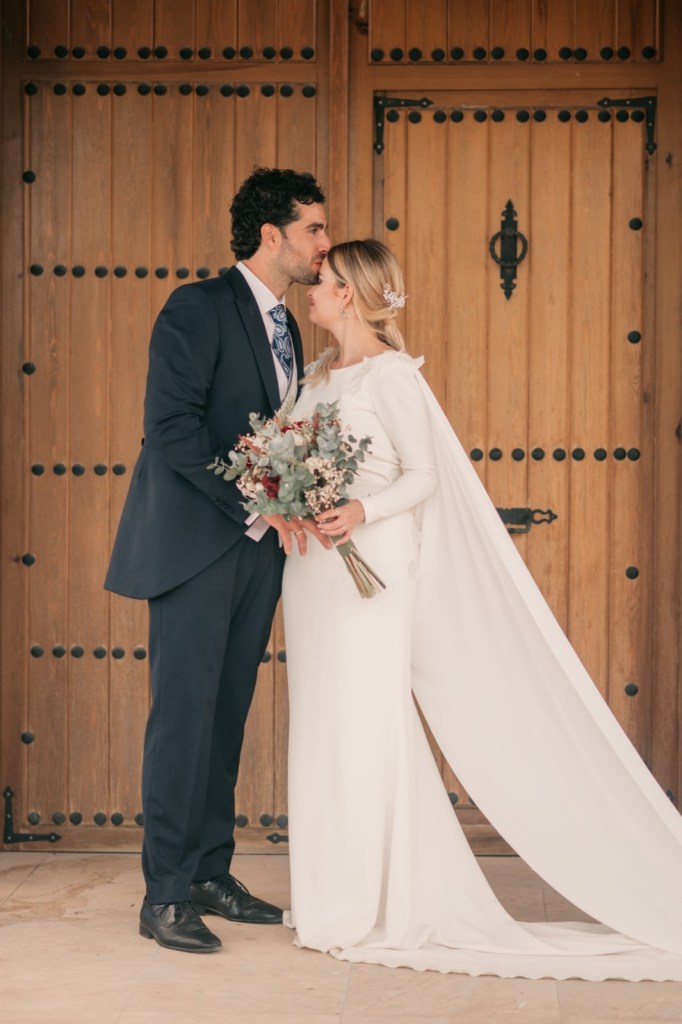 Carlos eligió un elegante chaqué azul marino de A Tu Medida , con corbata y chaleco a juego en tonos azules, y le ayudarían a vestirse sus familiares más íntimos: padres, hermanos y su bonita sobrina. Por su parte, Patricia lucía un precioso y sencillo Pronovias con una larga capa que salía desde sus hombros, y un bonito velo. El look lo complementaban sus Mariela Shoes y su ramo de Puri GC. En sus preparativos, además de sus padres y hermana, la acompañarían sus mejores amigas y sus sobrinas, y se vivieron momentos de mucha emoción.