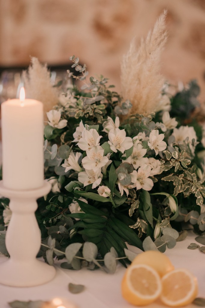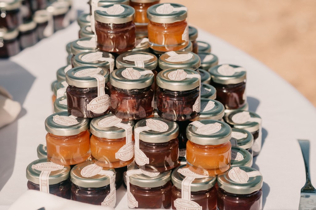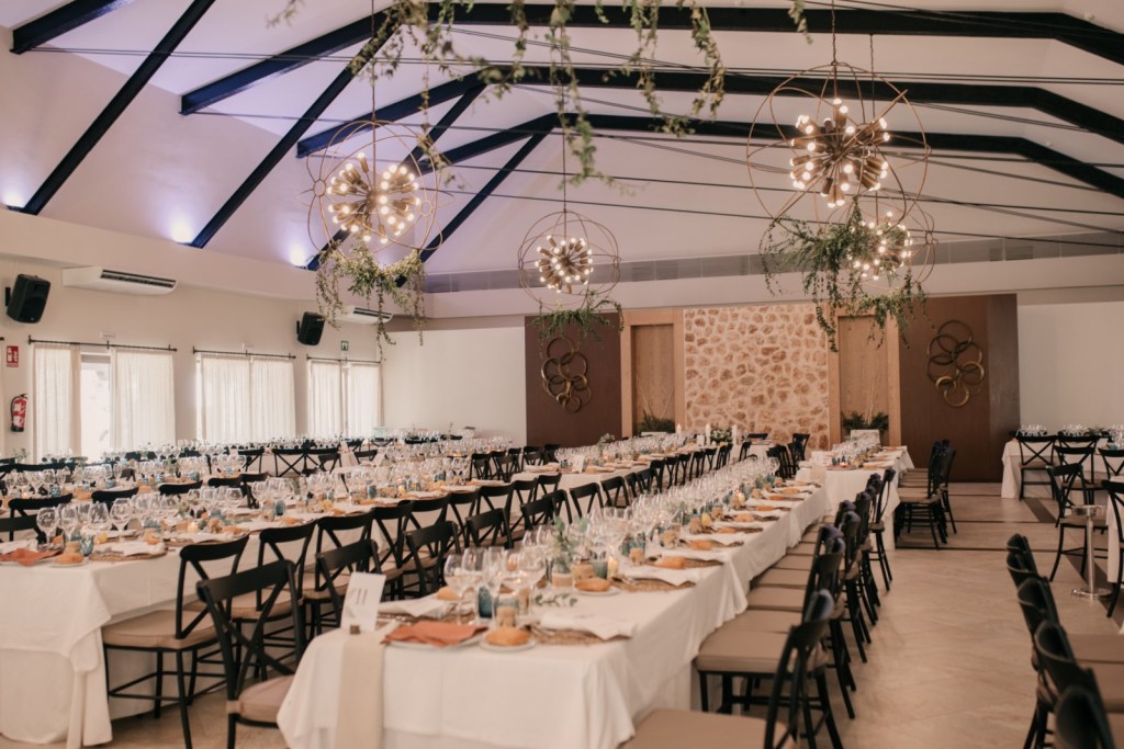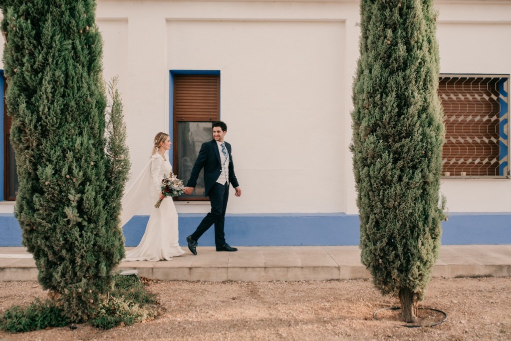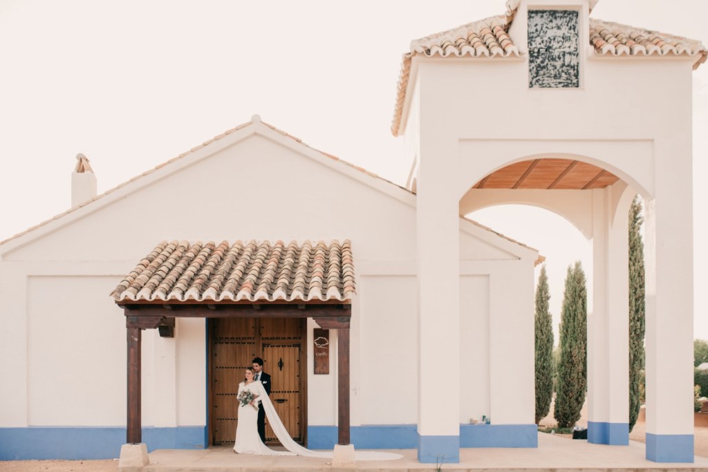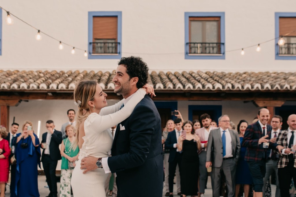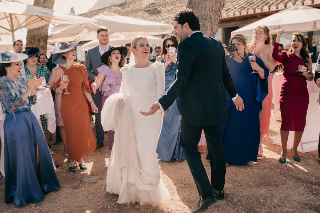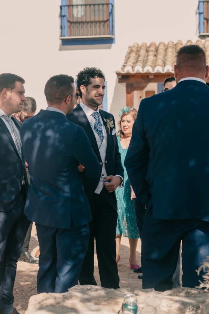 La ceremonia fue muy cuidada por el equipo de Margo Wedding Planner , así como el resto del evento. Tuvo lugar en un entorno precioso, con la antigua ermita de la finca de fondo, y no faltaron las flores. El pasillo, que adornaban unas alfombras de yute, estaba repleto de capazos con eucalipto y distintos tipos de ramas, mientras que a los novios les albergaba una bonita composición octogonal con pampas, palma y eucalipto, que luego se aprovecharía también para su sesión de pareja. Entre lágrimas de emoción y risas, los discursos se iban desarrollando.