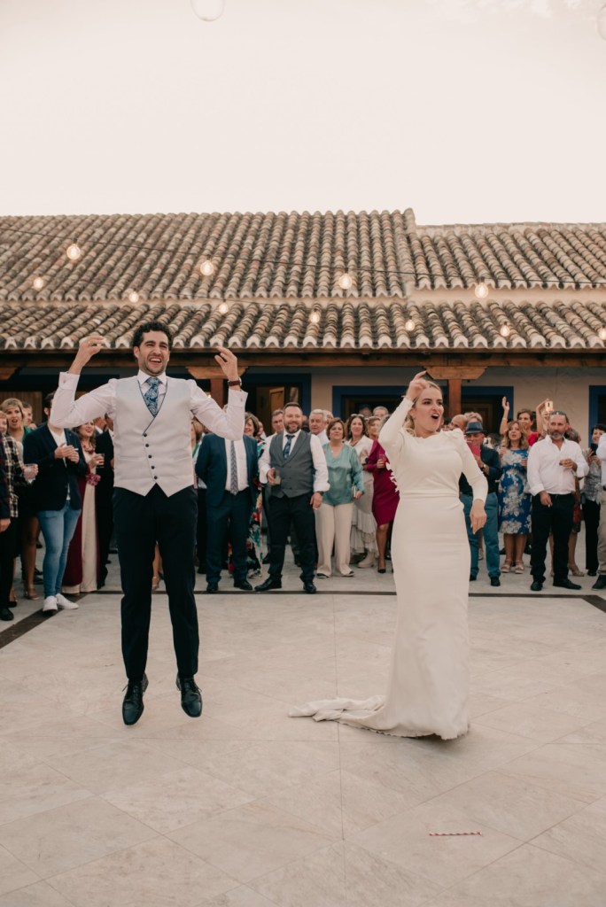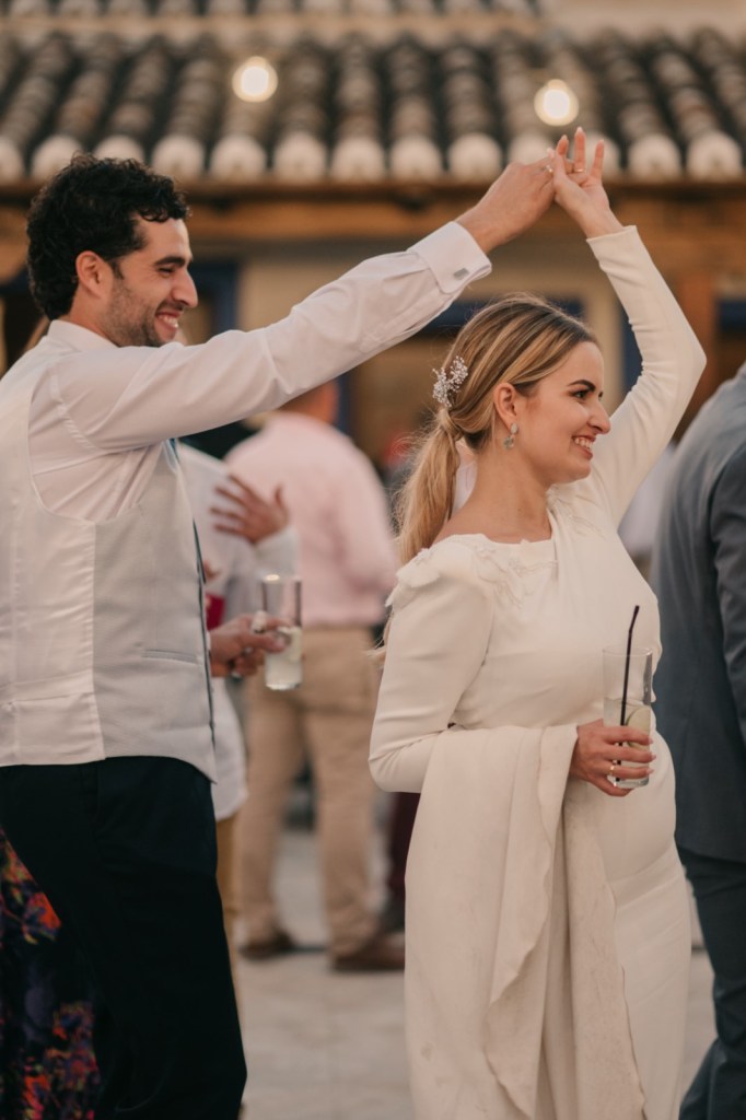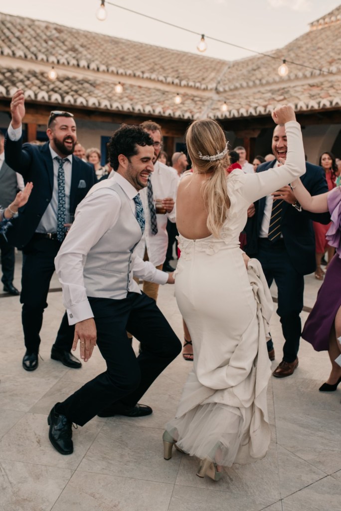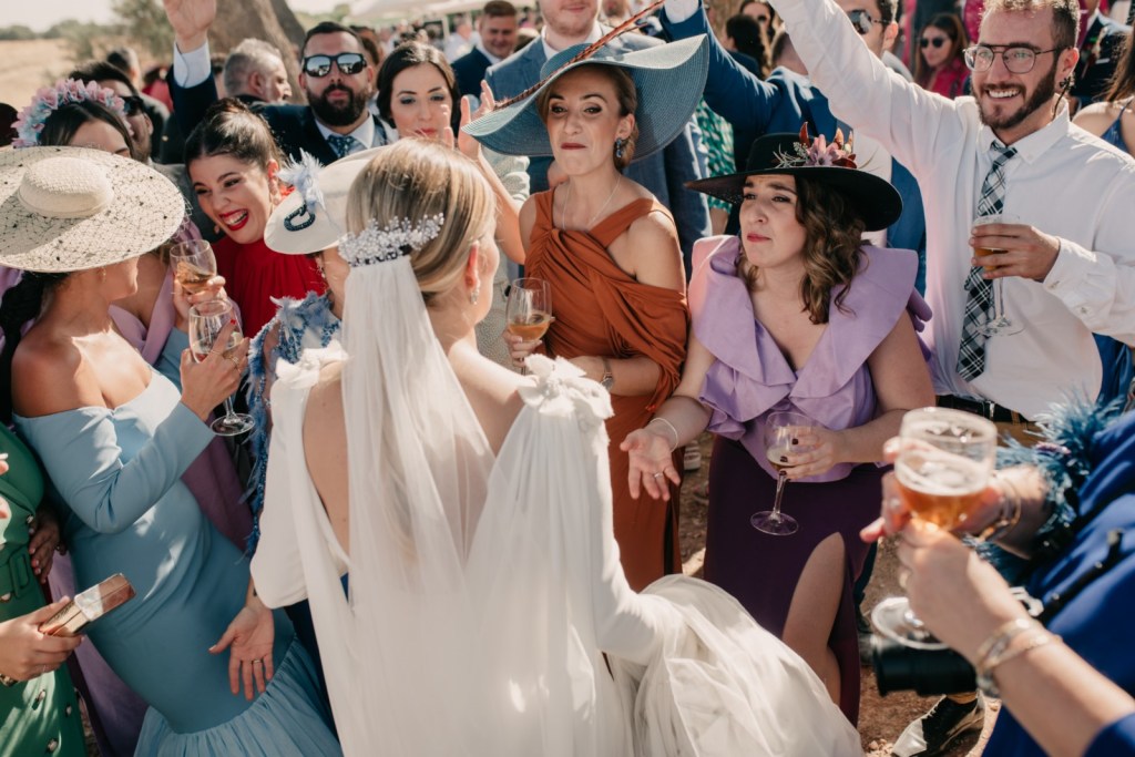 Antes de pasar a la parte de fiesta y barra libre, «secuestramos» unos minutos a los novios, para aprovechar la luz del atardecer y realizar una segunda sesión en algunos rincones de la finca en los que la luz tenía ese tono suave que tanto nos gusta. Tras esto, y ahora sí, la fiesta comenzó por todo lo alto, y los invitados disfrutaron de lo lindo con los rincones de 360º a cargo de Fotomatón Fama y la Glitter Station, tan de moda últimamente en las bodas.