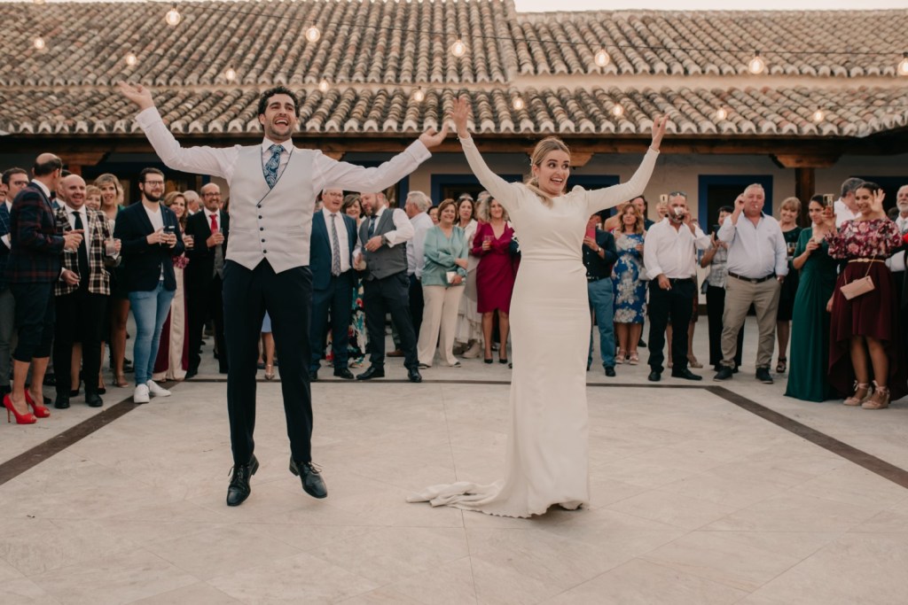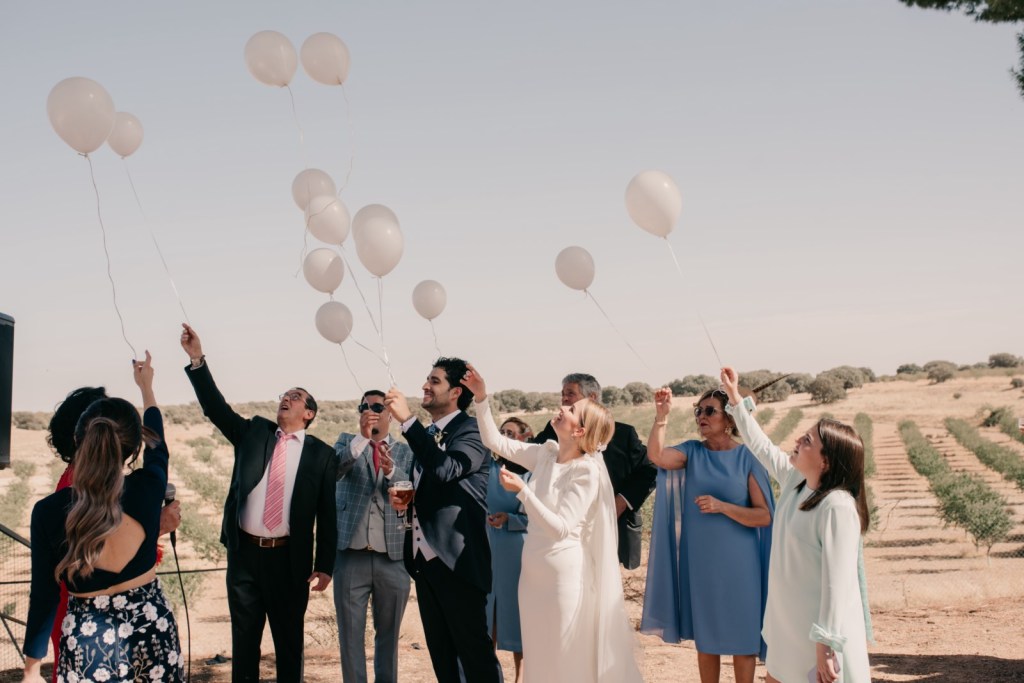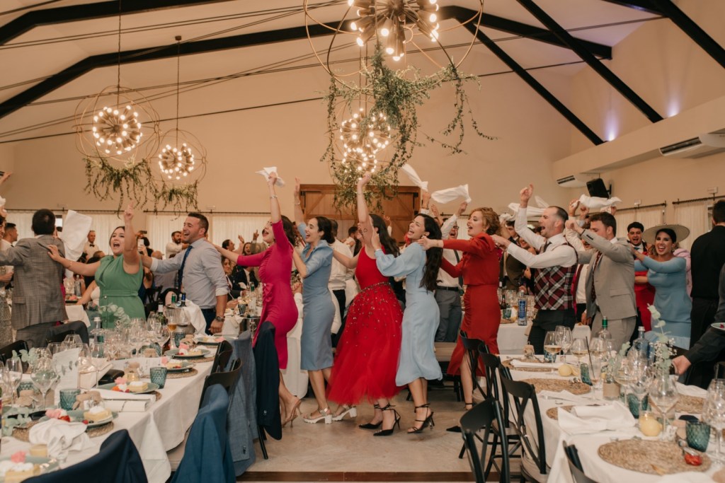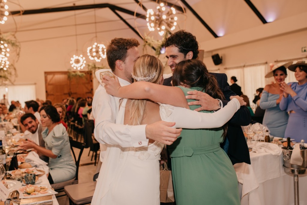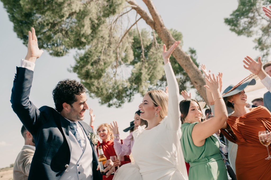 Antes de pasar a la parte de fiesta y barra libre, «secuestramos» unos minutos a los novios, para aprovechar la luz del atardecer y realizar una segunda sesión en algunos rincones de la finca en los que la luz tenía ese tono suave que tanto nos gusta. Tras esto, y ahora sí, la fiesta comenzó por todo lo alto, y los invitados disfrutaron de lo lindo con los rincones de 360º a cargo de Fotomatón Fama y la Glitter Station, tan de moda últimamente en las bodas.