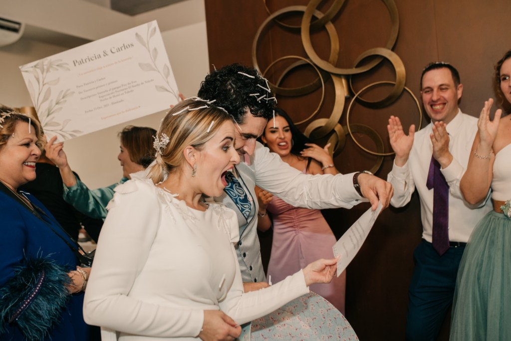 El cóctel fue de lo más divertido. Los novios anunciaban su llegada con bengalas de humo, y el grupo flamenco Son la Sal amenizaron el ambiente con su música, con la que más de uno se arrancó a bailar. Así continúo el ambiente para entrar a la comida, a cargo del catering Lady Gemma, destacando su calidad y buen servicio. El salón, que de por sí destaca por su originalidad, estaba decorado con mucho gusto. En el trascurso de la comida, sucedieron diferentes sorpresas y regalos.