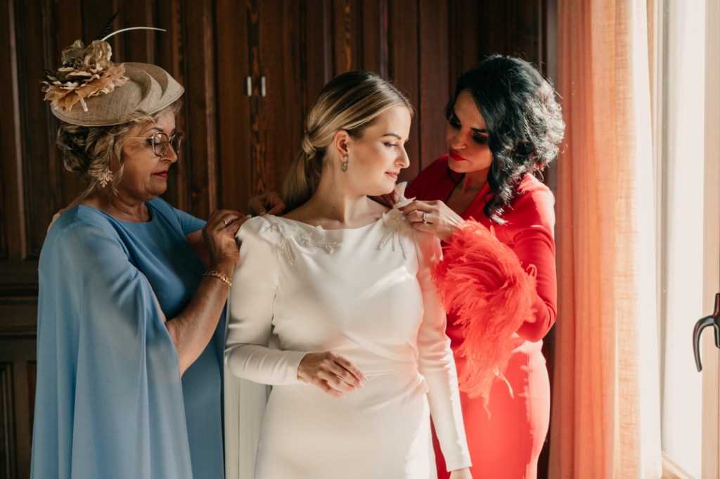 Comenzaba el día con sus preparativos. Ambos eligieron la propia Quinta Monteguerra para vestirse, todo un acierto, pues es un lugar lleno de encanto, con estancias amplias y muy luminosas, algo muy importante para que nuestro trabajo, y por lo cuál, los recuerdos del gran día, queden lo mejor posible.