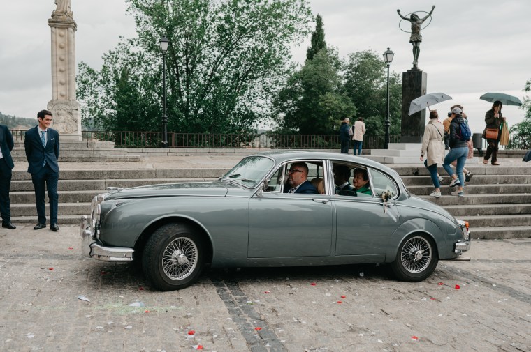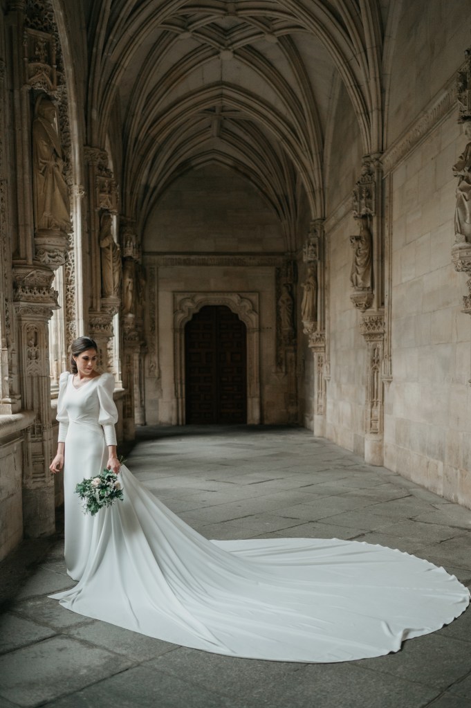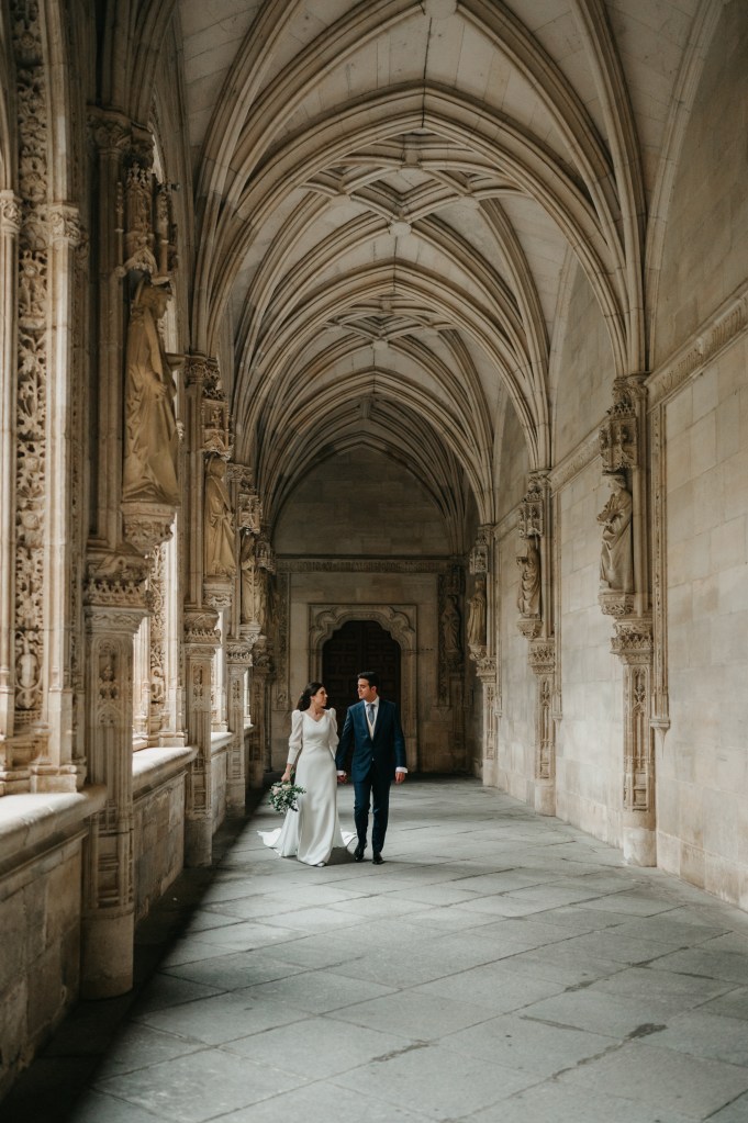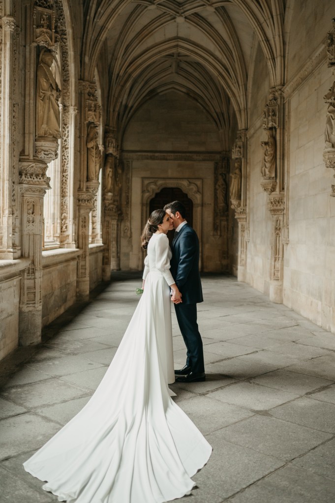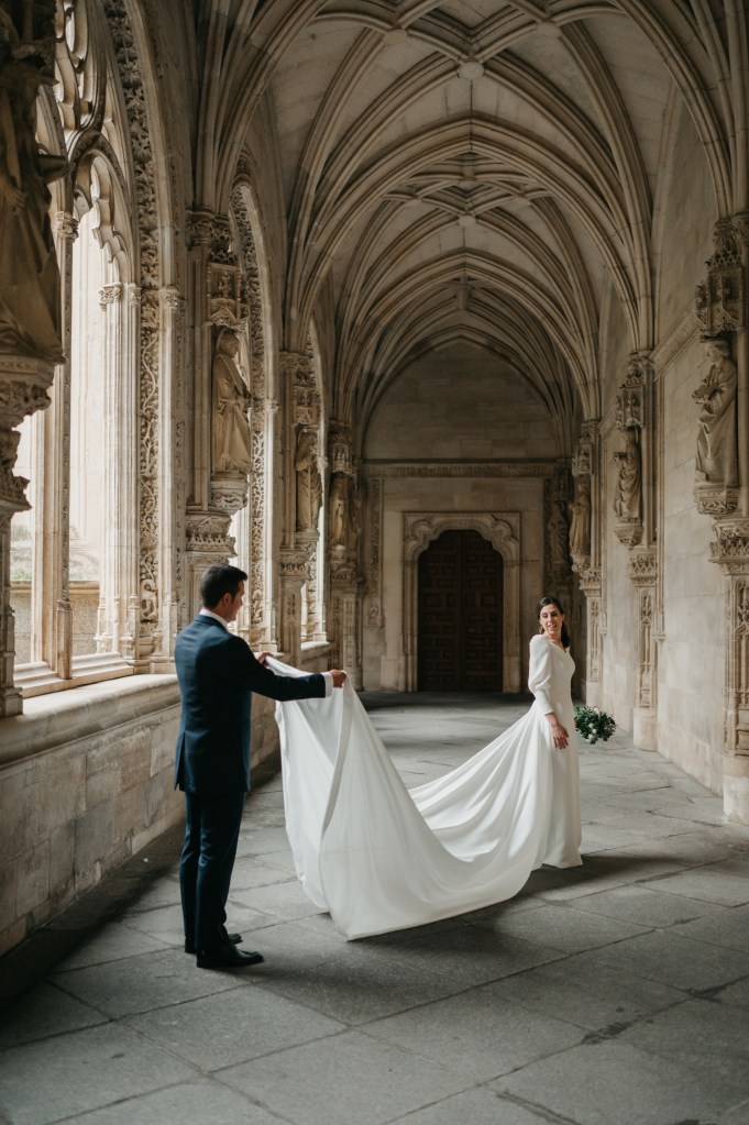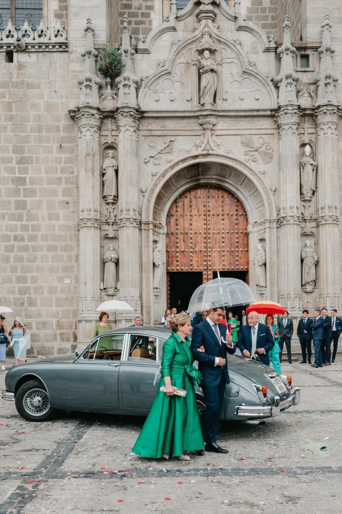 El coche clásico de Classic Road Trips fue el encargado de llevarlos a San Juan de los Reyes, que siempre es un buen lugar para volver y respirar sus siglos de historia. Allí se dieron el sí quiero, en una ceremonia en la que cabe destacar la buena música de órgano de D. Pedro López Hervás, a la voz de la soprano Rosa, y tras el confeti, pudimos pasar al claustro para realizar la sesión de pareja. Siempre es un placer caminar entre sus muros y jugar con la luz que se cuela entre los arcos, aún en los días lluviosos.