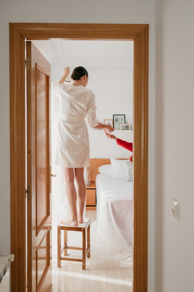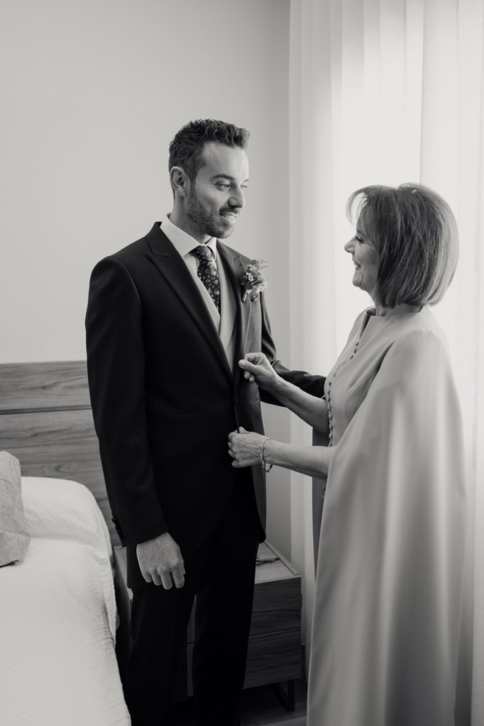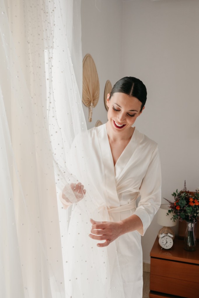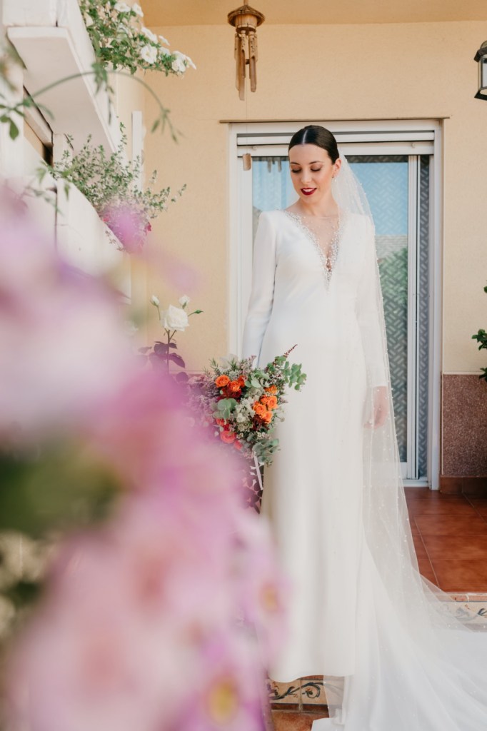 Por su parte, Inés se vestía en el domicilio de sus padres, en el que destacamos el bello patio que con tanto mimo cuidan, lleno de flores y luz.