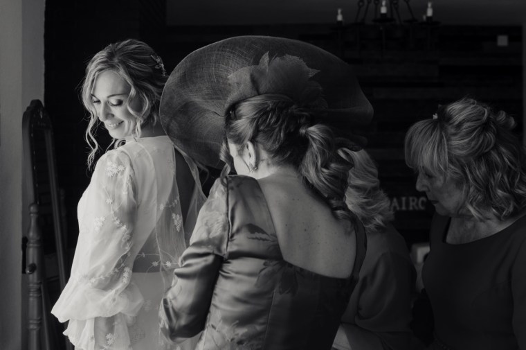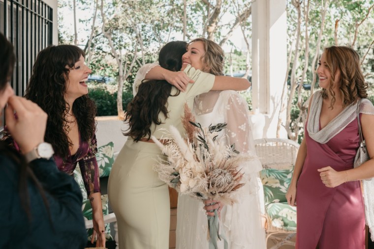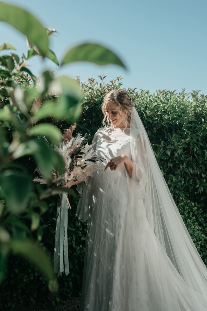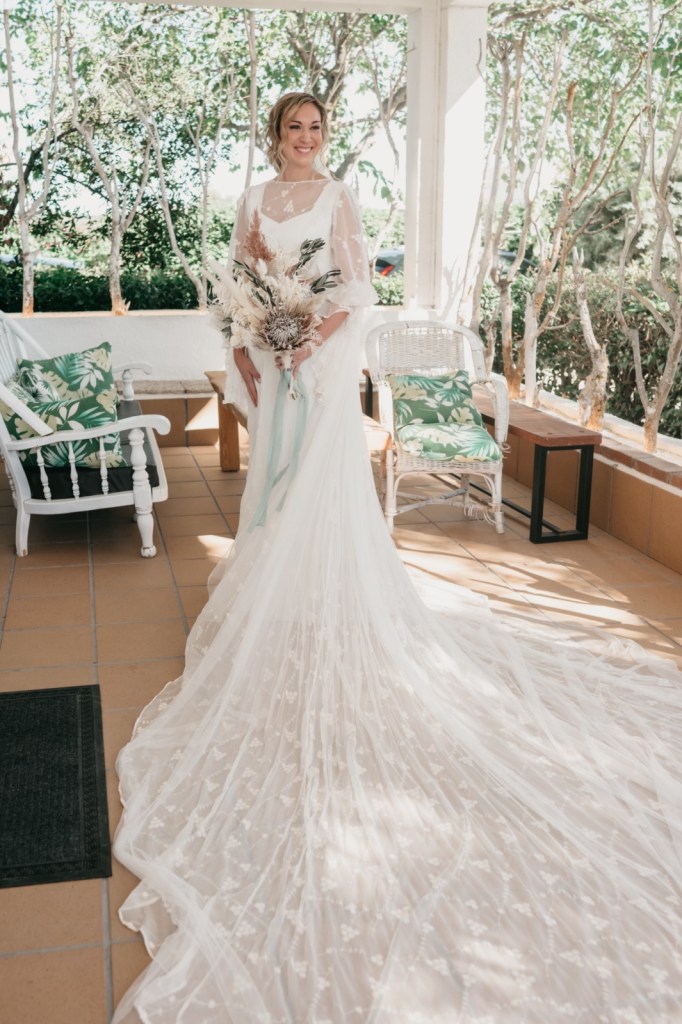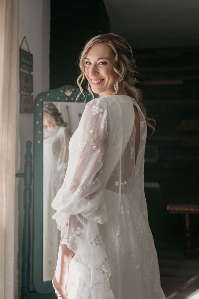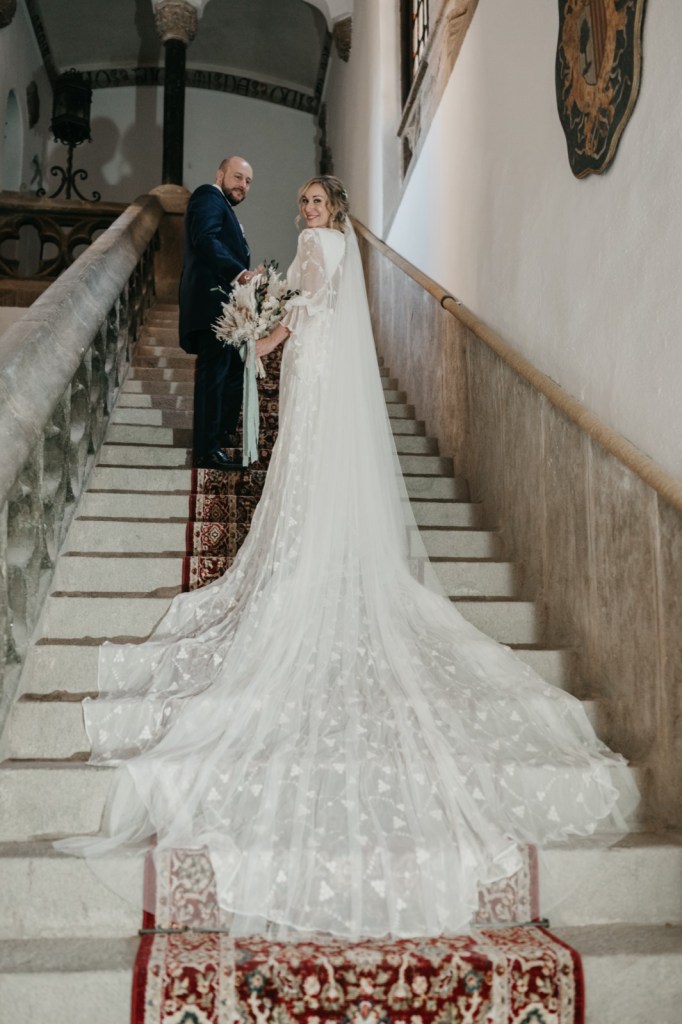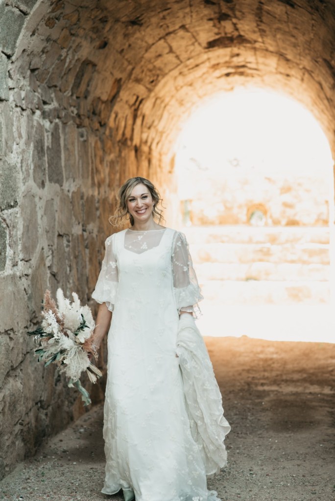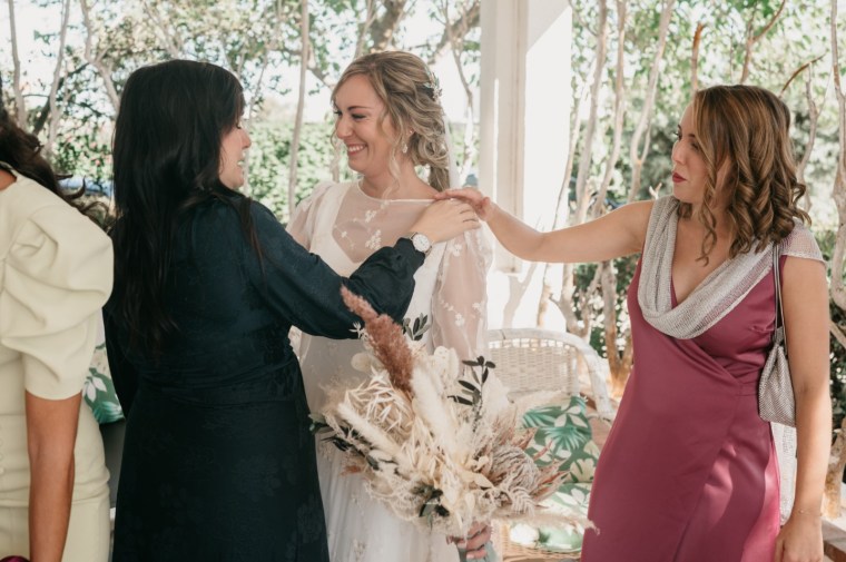Por su parte, Paloma se vestiría en una casa rural, muy cerquita. Su look, bohemio y romántico nos encantó. Era un vestido precioso de María Baraza, que a su vez daría la opción de verla de diferentes maneras a lo largo de la boda. Lo acompañaba un tocado de Volvorete sobre su trenza, obra de Silvia de Miss Pretty Imagen, un ramo totalmente boho de Pecci Arte Floral y unos zapatos en tono verde agua de Mariela Shoes.