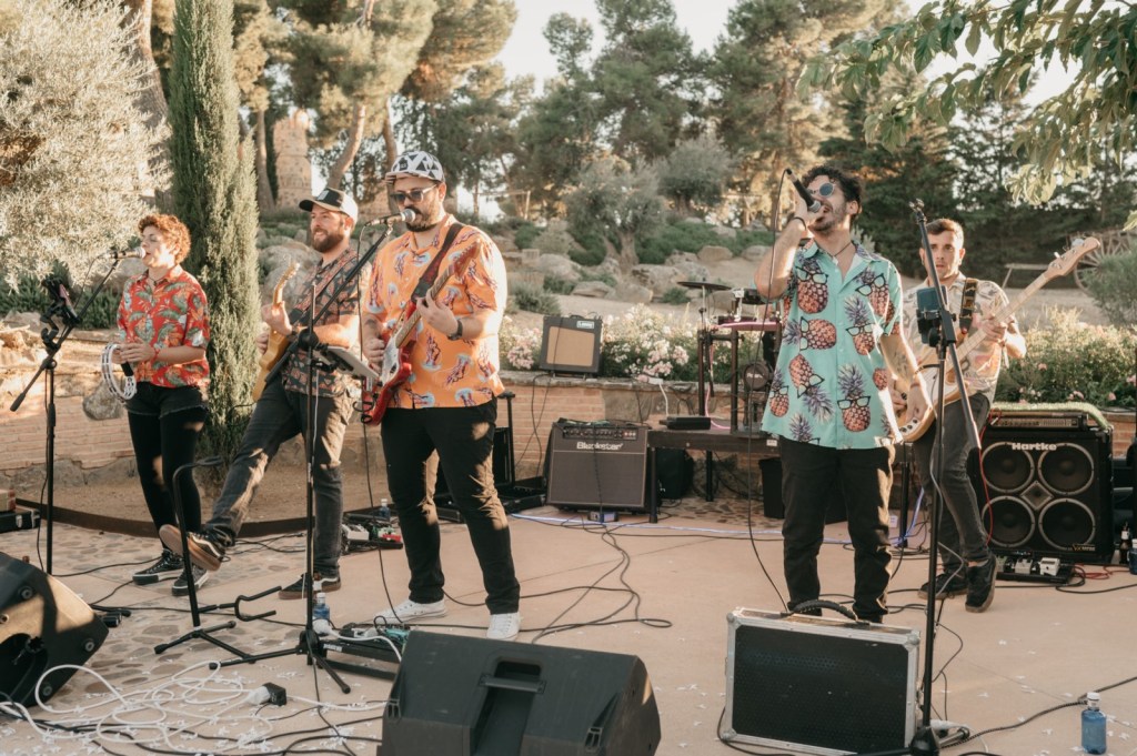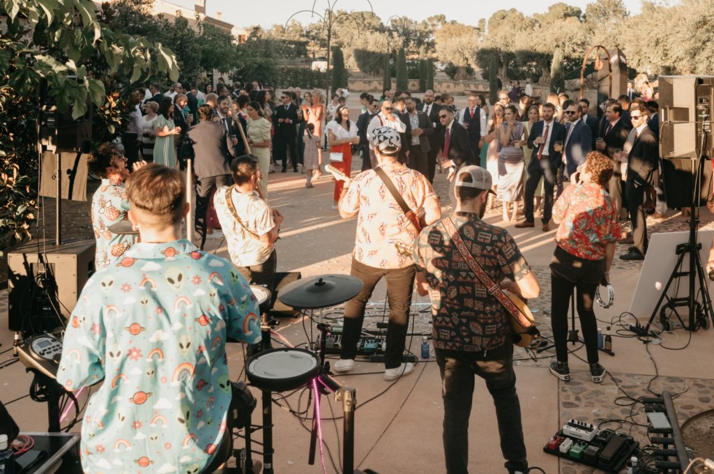La parte final de la boda volvería a los espacios exteriores, con el castillo como testigo. Allí, los invitados disfrutaron de un auténtico concierto en directo del grupo de música albaceteño Efectiviwonders, y se notó la animación del ambiente, pues novios e invitados bailaron hasta el anochecer.