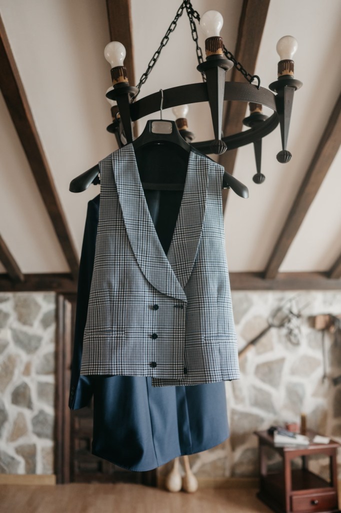 Para la ocasión, eligió un elegante chaqué azul marino, con chaleco en estampado pata de gallo en tonos azules, y una corbata floreada, todo muy elegante, del diseñador Félix Ramiro.