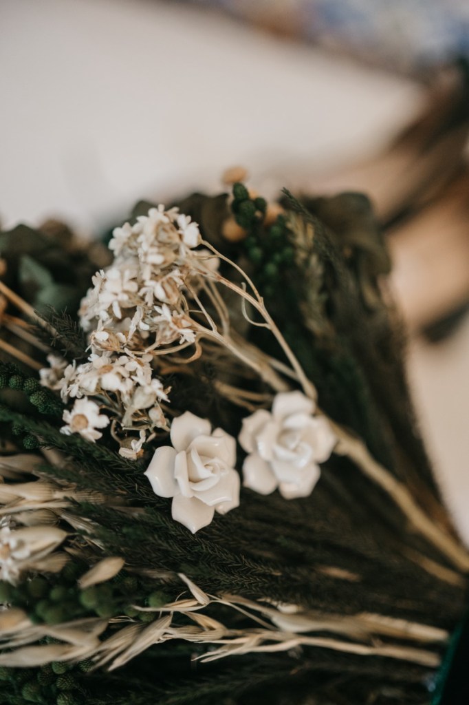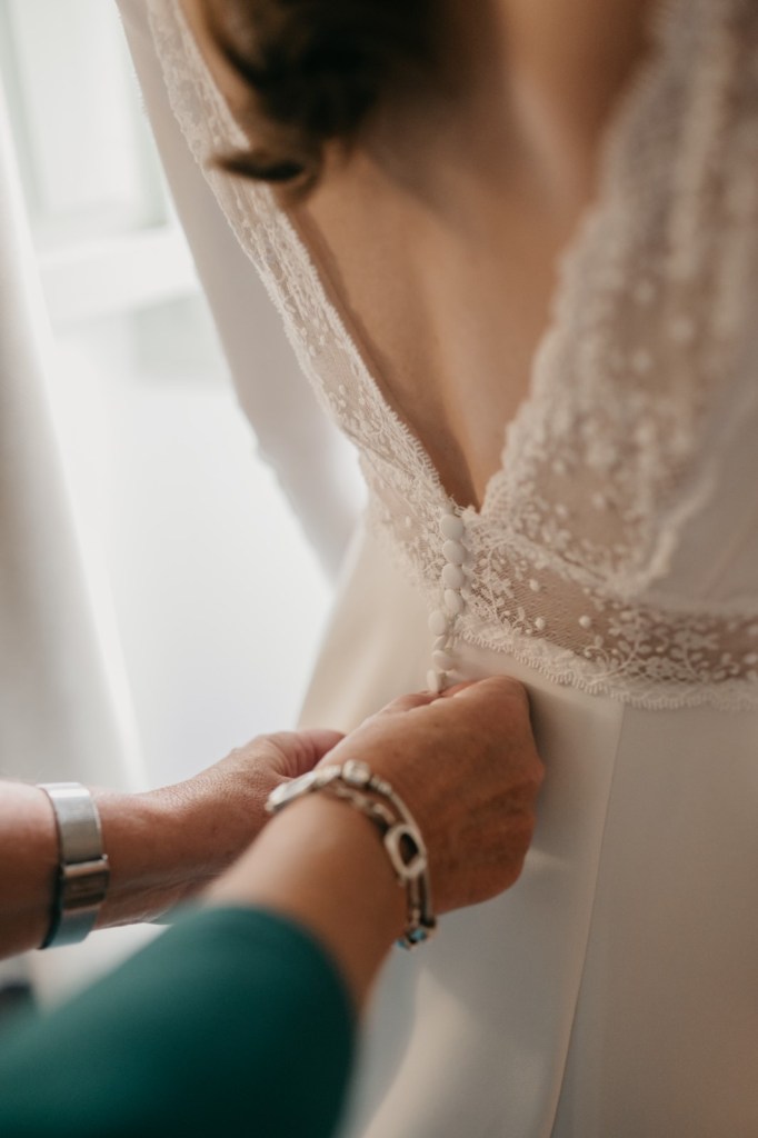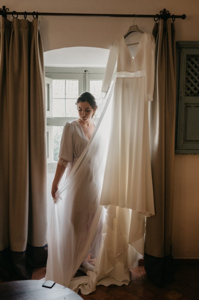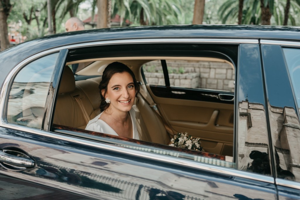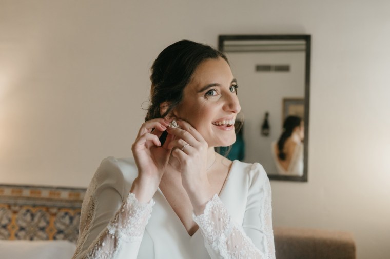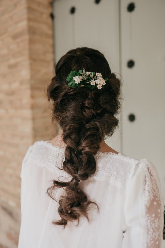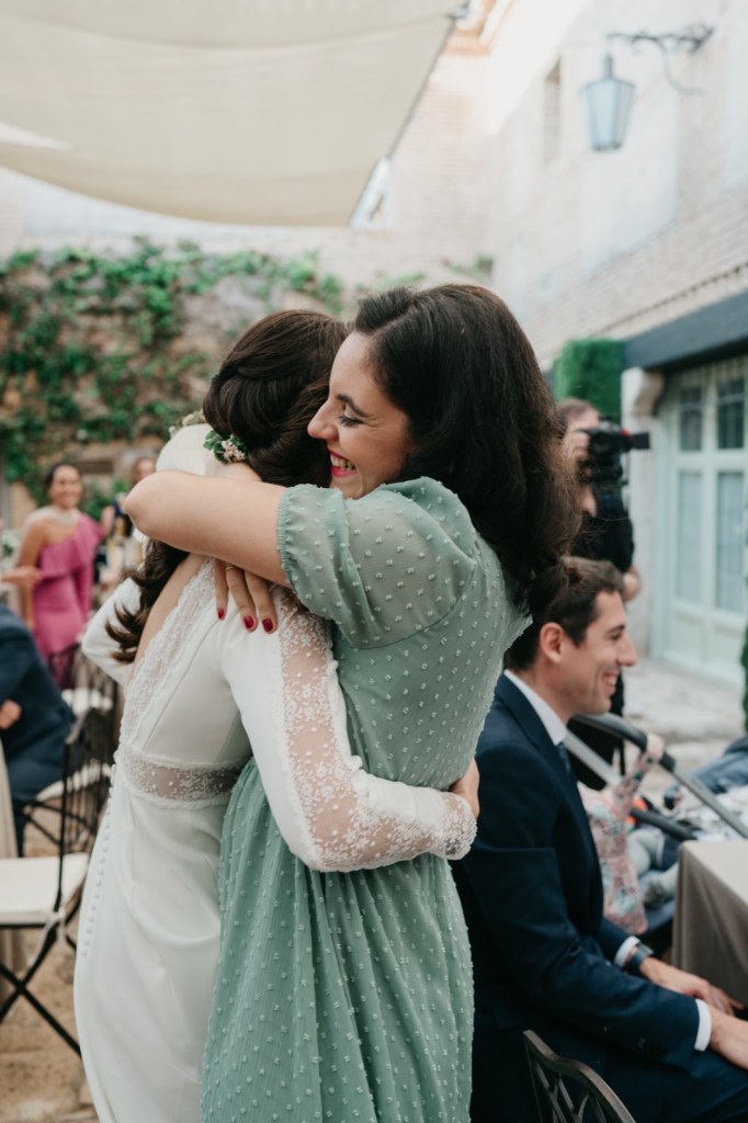 Por su parte, Belén elegiría una de las habitaciones del Parador de Almagro para vestirse, y así aprovechamos también los exteriores para hacerle las primeras fotos con su vestido de Silvia Fernández y sus zapatos verde esperanza de Franjul. Además, estaba preciosa maquillada y peinada por el equipo de Verde Agua Novias, con un tocado que prendía de su trenza a juego con su ramo, destacando las margaritas silvestres, obra de floristería Santa Gema.