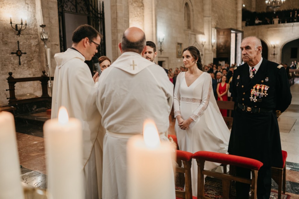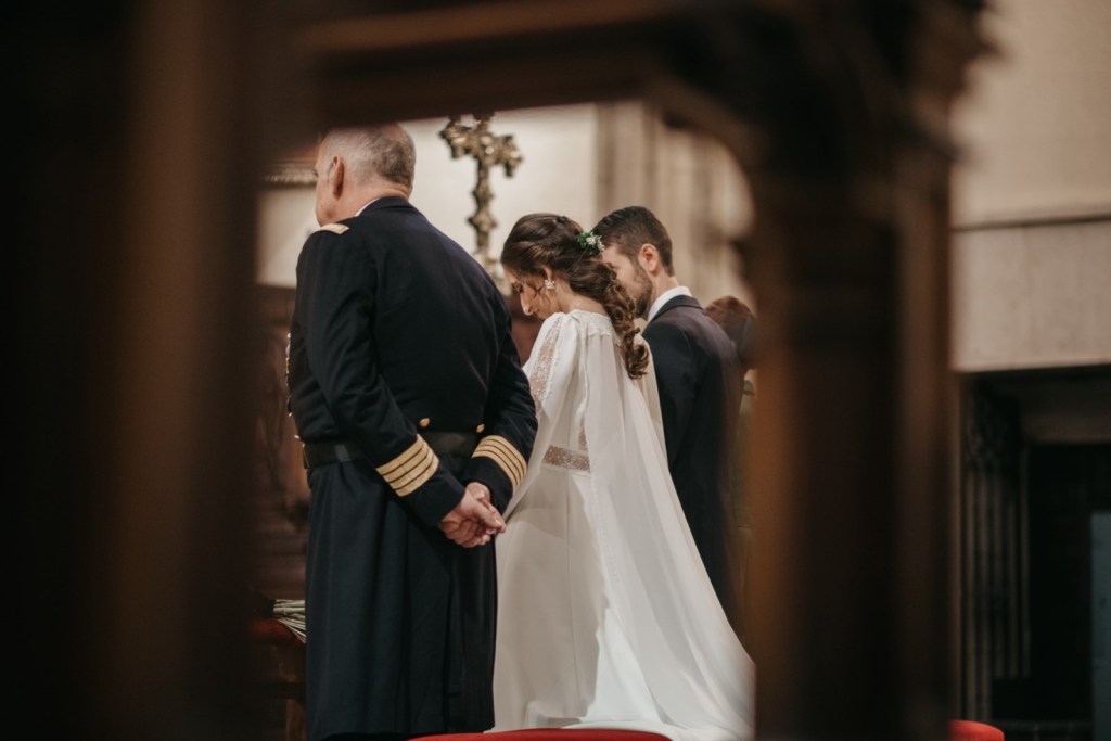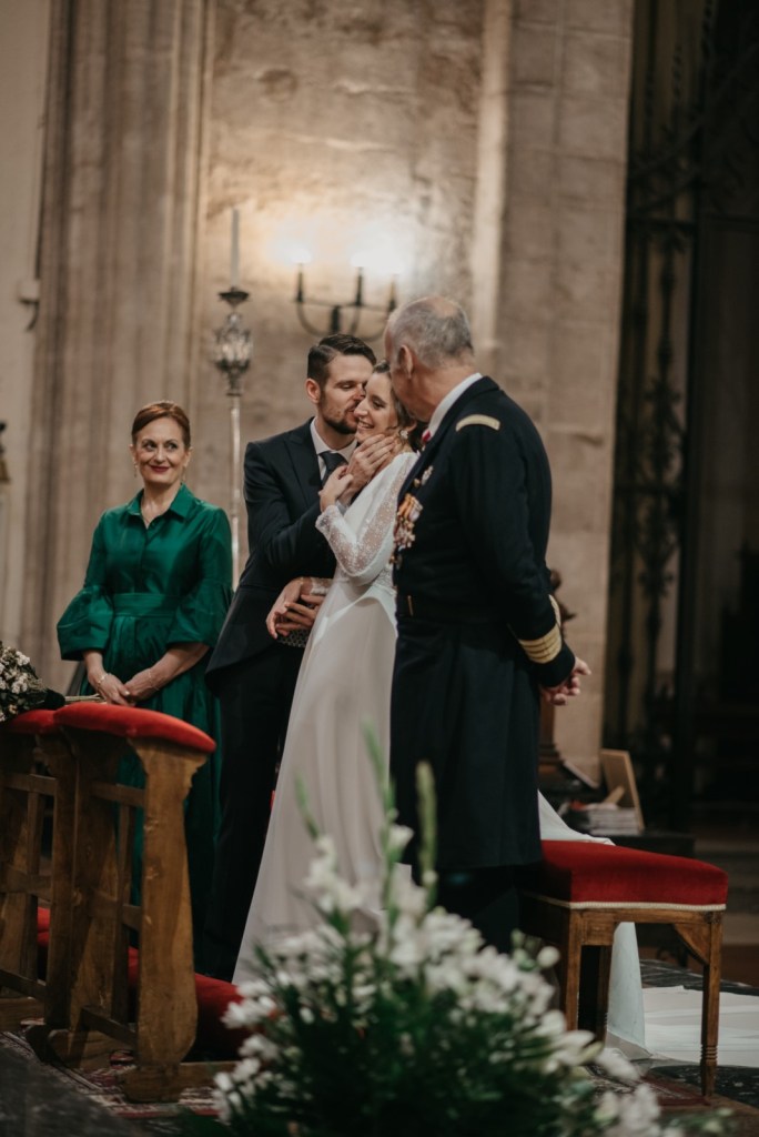 La Catedral de Ciudad Real fue la testigo de albergar el sacramento del matrimonio de esta bonita pareja. Hemos de reconocer que nos encanta trabajar «en casa» y la catedral es de nuestras iglesias favoritas, no solo por su majestuoso retablo, si no por la luz tan bonita que tiene. Además, la capa de Belén quedaba preciosa cayendo por los escalones del altar mayor.