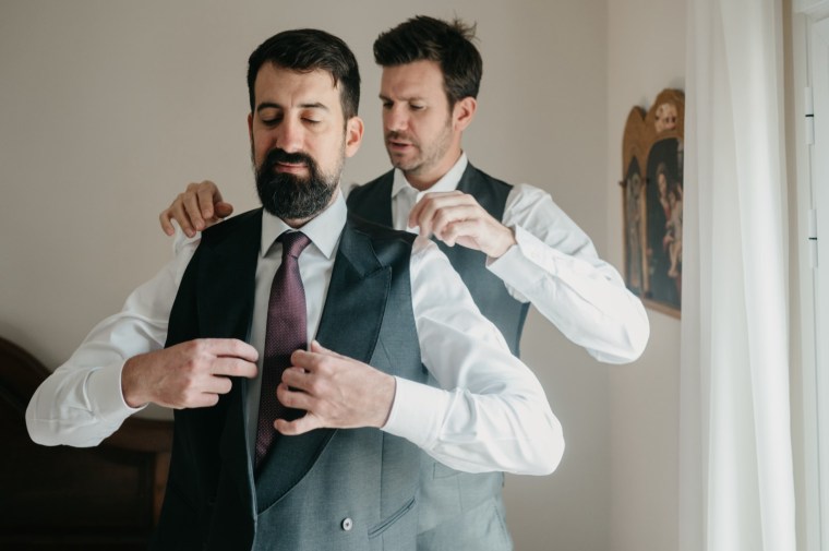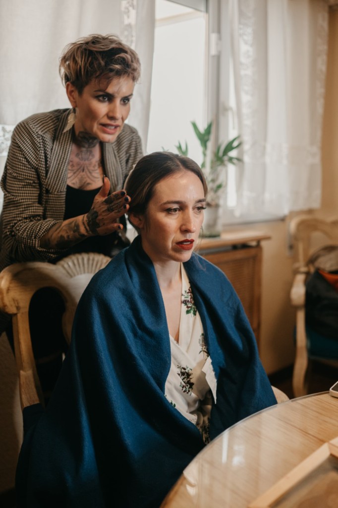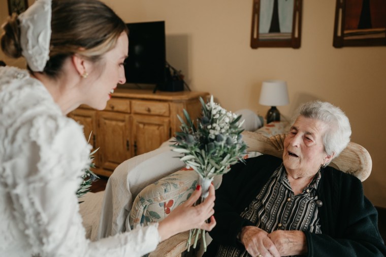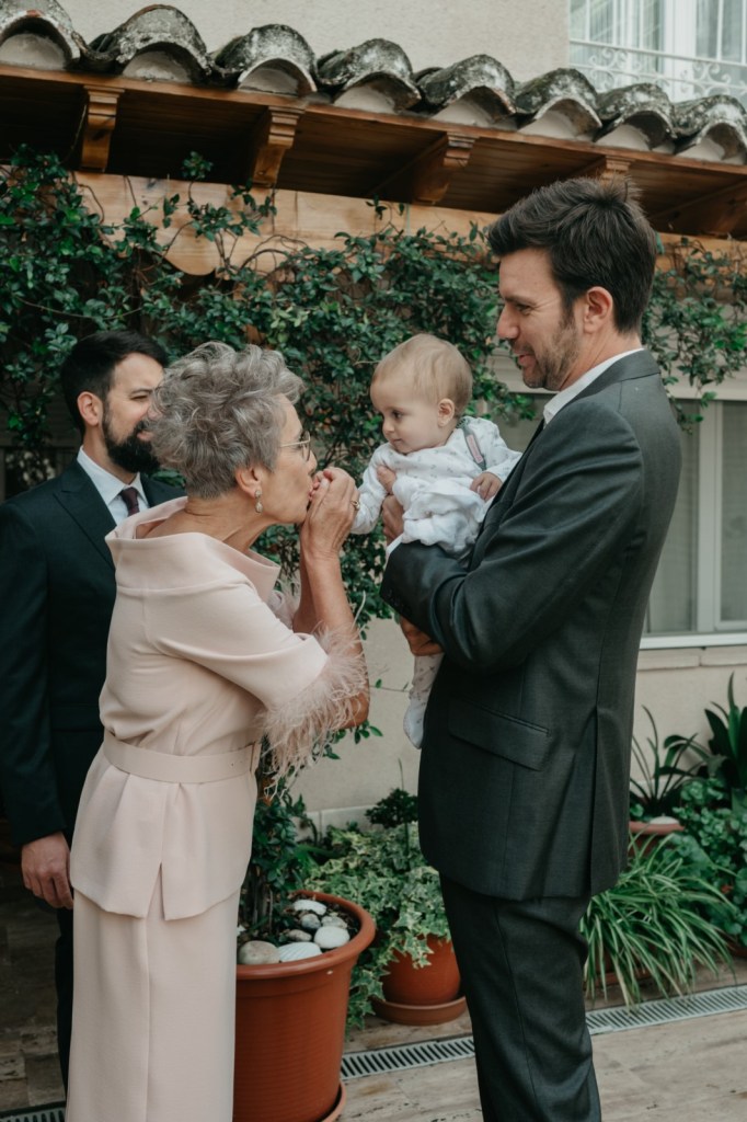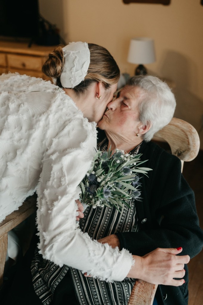 Se prepararon por separado en sus respectivas casas, acompañados de sus dos hijos pequeños, familiares cercanos y amigos que compartieron con ellos esos momentos tan íntimos. Un detalle muy especial fue la presencia de la abuela de Mercedes, quien, a sus 103 años, acompañó a su nieta en ese día tan importante. Mercedes le obsequió una réplica de su ramo, un gesto lleno de ternura y simbolismo.