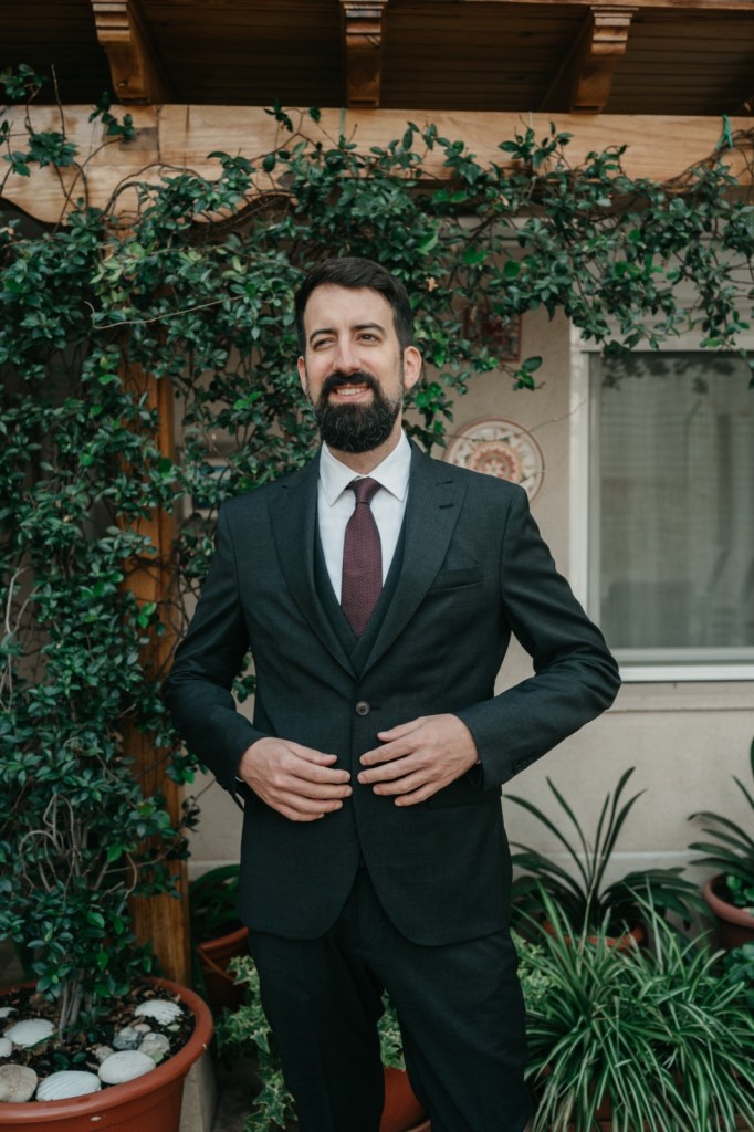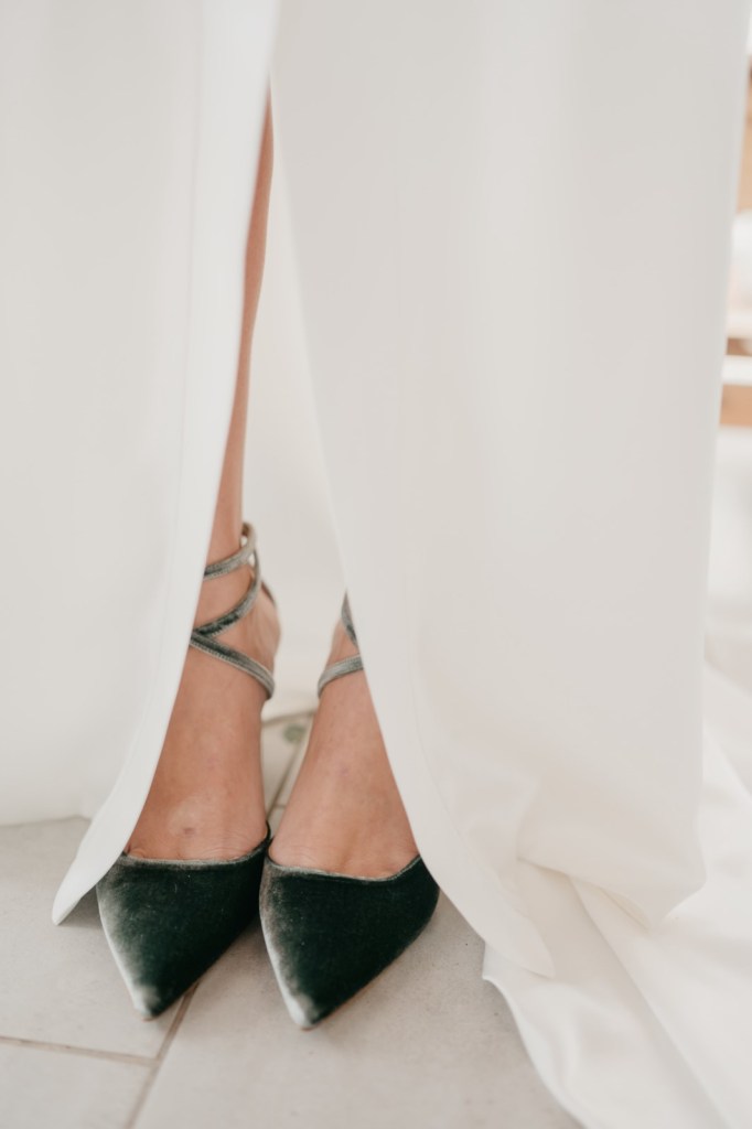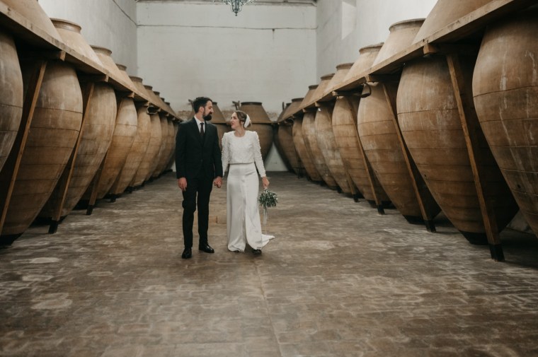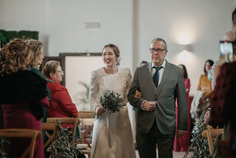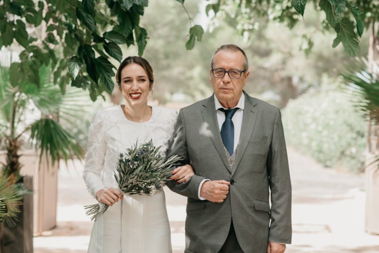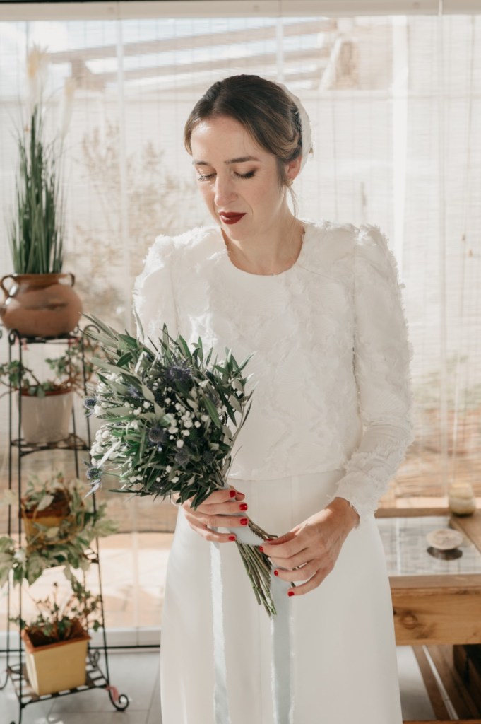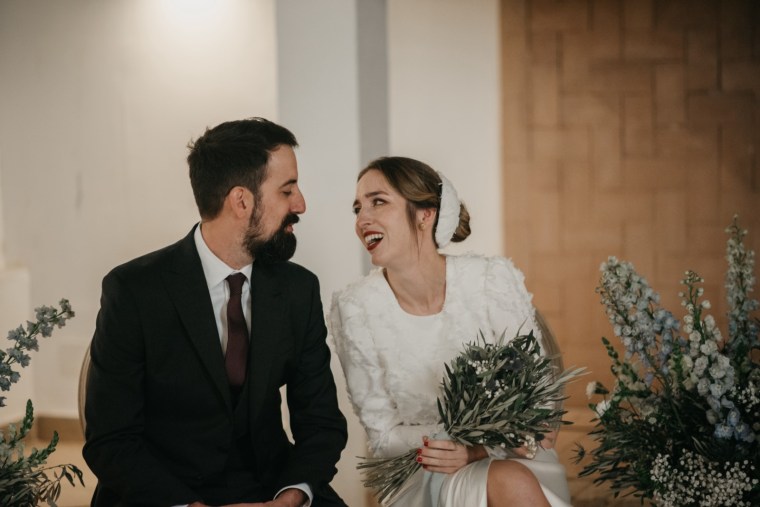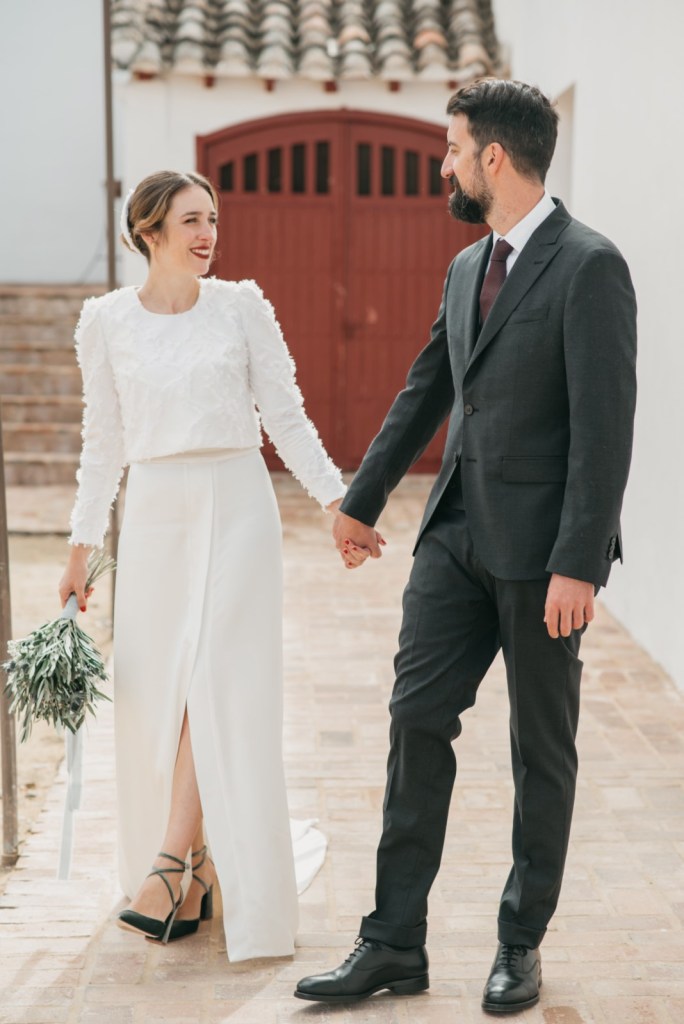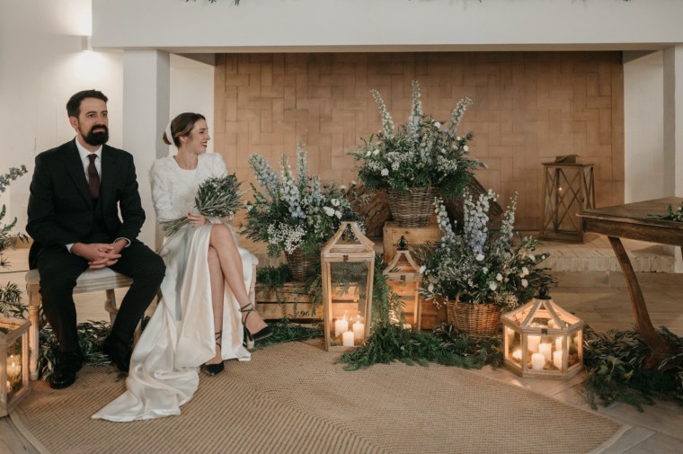 Mercedes brilló en su vestido de la diseñadora Panambi, con un tocado delicado de Volvorete y un bonito ramo de olivo, paniculata y cardo morado de El Jardín Romántico. Los zapatos, en terciopelo verde de Flor de Asoka, fueron el toque final perfecto. Del estilismo se encargaría Virago para el pelo, y Bea Sobrino para el make up. Jesús, por su parte, lució un elegante traje gris oscuro de Massimo Dutti, con chaleco a juego, destacando por su sencillez y sofisticación.
