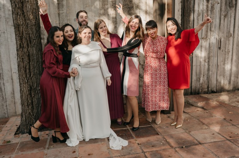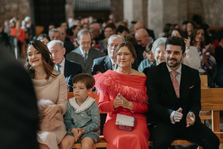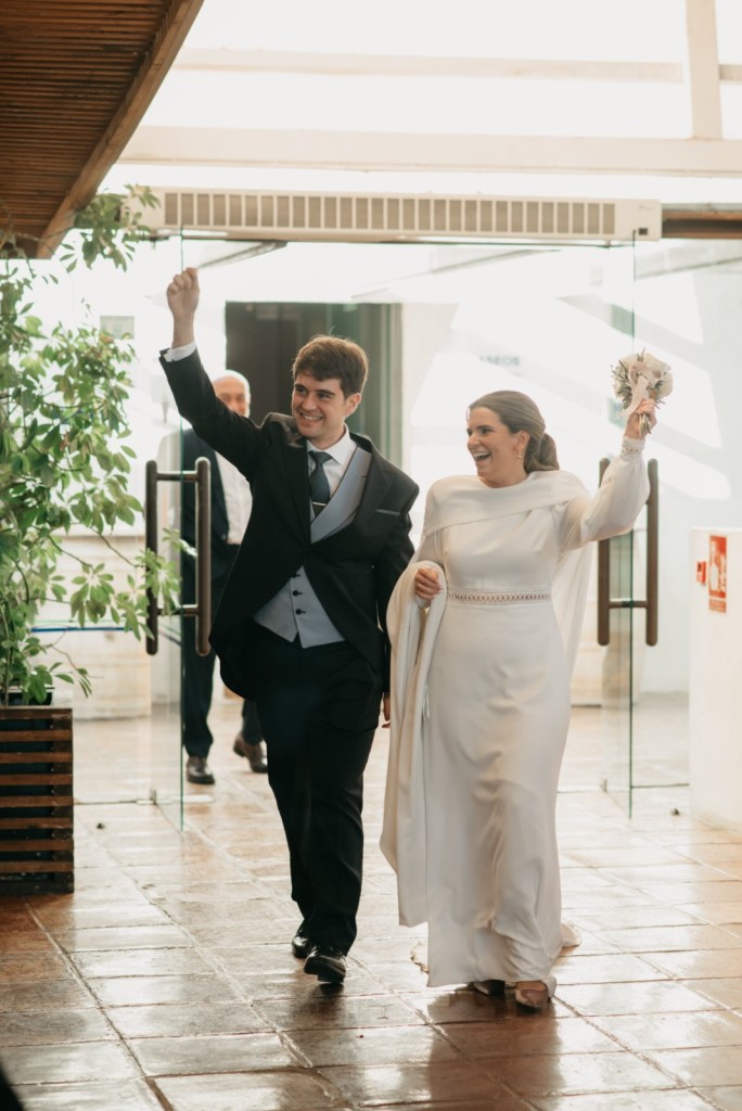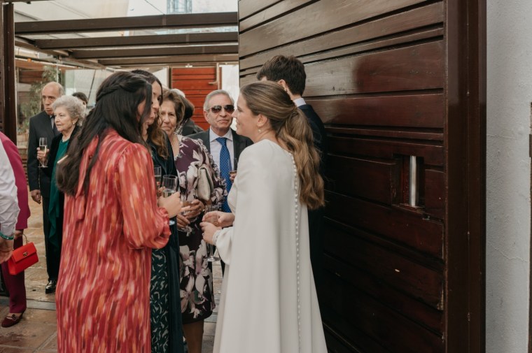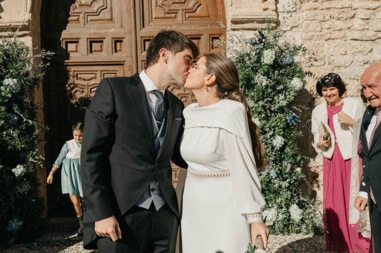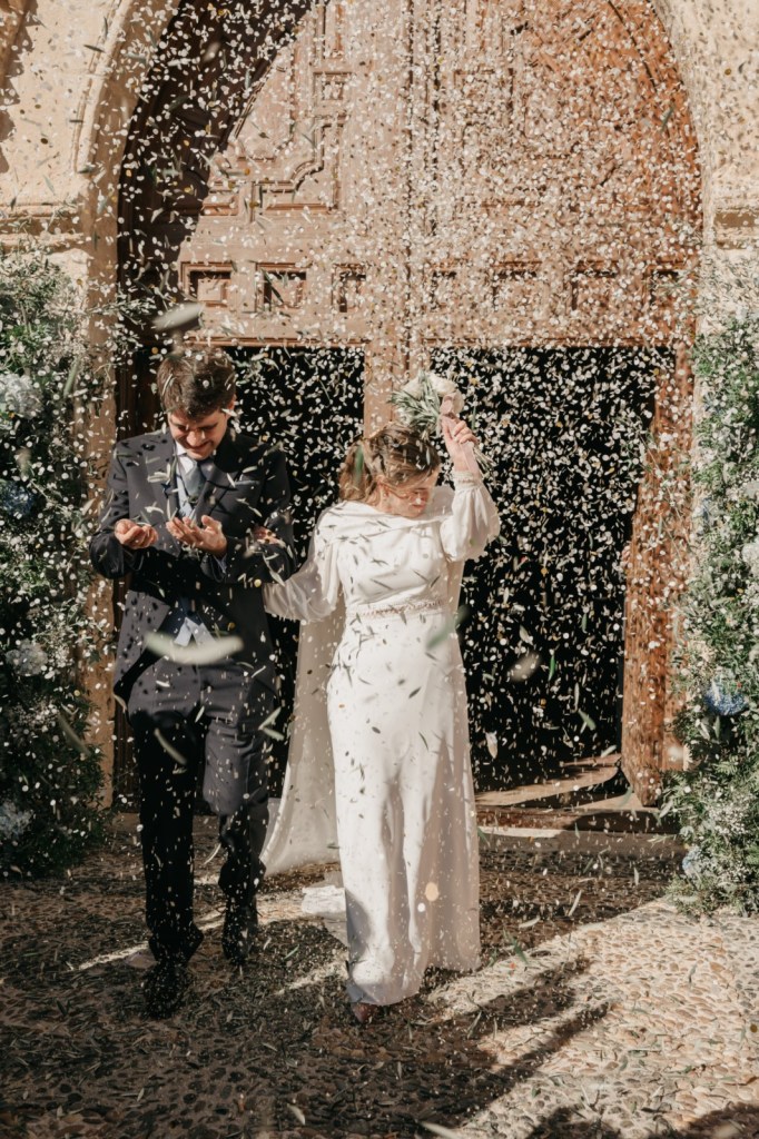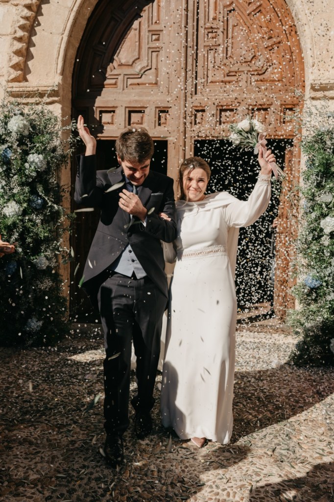 A la salida de la iglesia, los novios fueron recibidos con una lluvia de pétalos y confeti por parte de sus invitados, antes de poner rumbo al lugar de la celebración: el restaurante Casa Pepe.