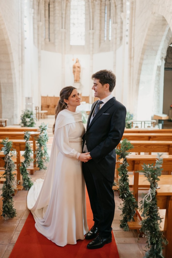 Allí, rodeados de familiares y amigos, Carmen y Bosco se dieron el “sí, quiero”, en una ceremonia emotiva, serena y muy especial. Tras los abrazos y las felicitaciones, aprovechamos el precioso patio interior de la iglesia para realizar una pequeña sesión de pareja que capturara la esencia tranquila y amorosa de ese momento.