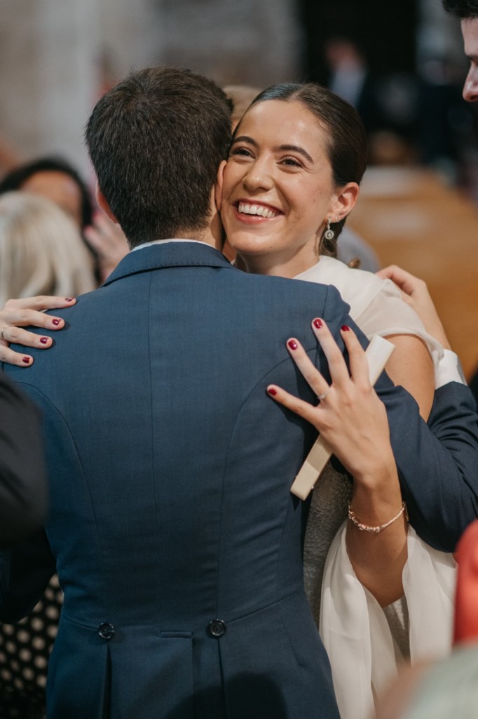 Desde el principio, ellos tenían claro que querían disfrutar de su boda sin interrupciones, así que comenzamos nuestro reportaje directamente en la iglesia. Con casi 300 invitados, el ambiente no podía ser más alegre y emotivo.
