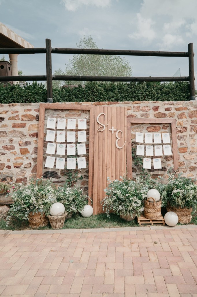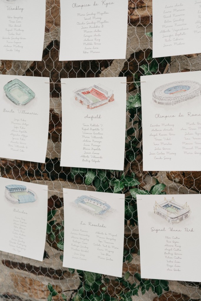 La finca estaba impecablemente decorada por VP Event Plan, las simpáticas y profesionales Victoria y Pilar, quienes cuidaron hasta el último detalle para crear una boda de 10. La papelería de IT Ilustración fue un auténtico acierto, destacando el seating plan con ilustraciones de estadios de fútbol, y un guiño especial al Atlético de Madrid, el equipo del corazón del novio.